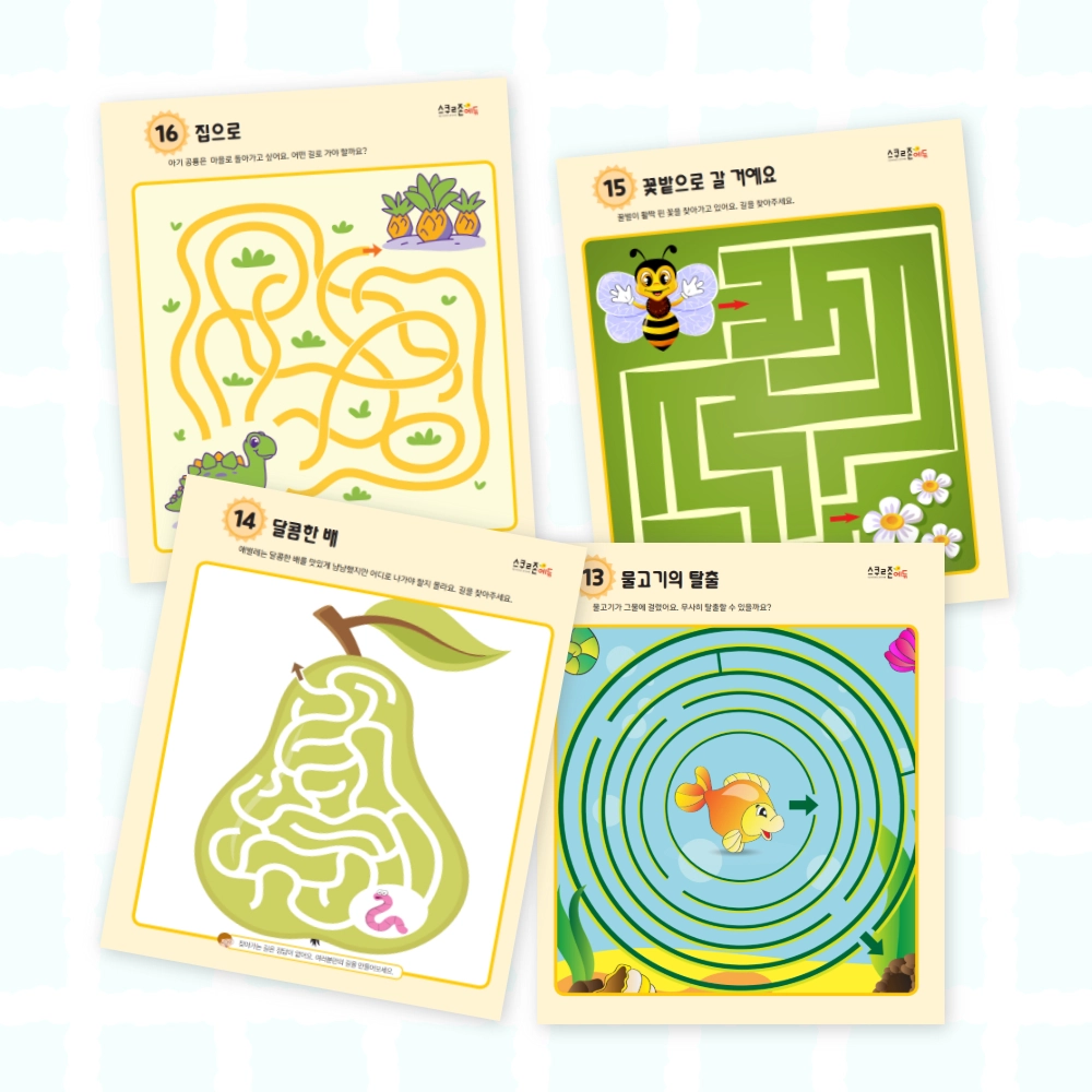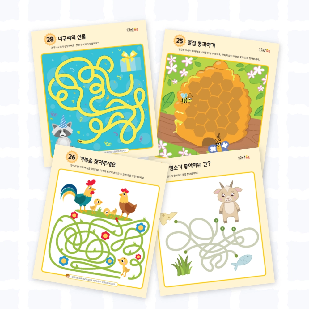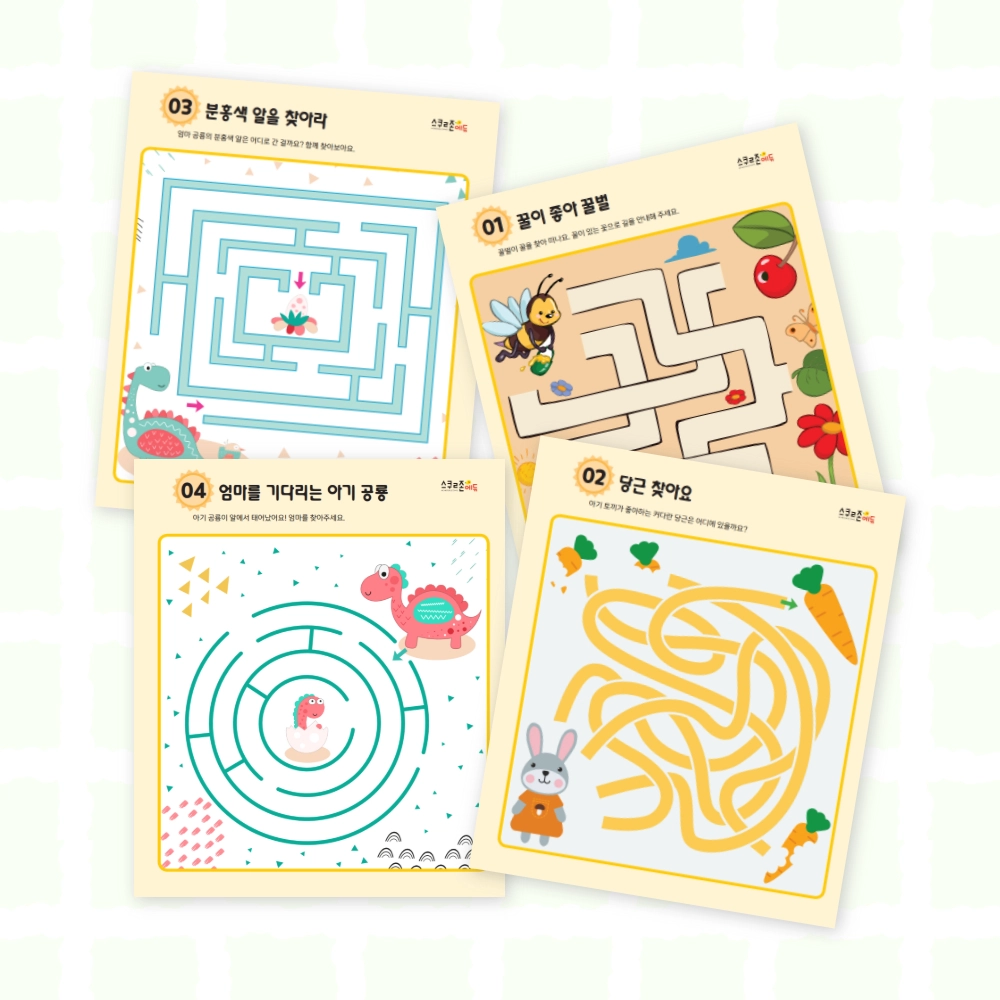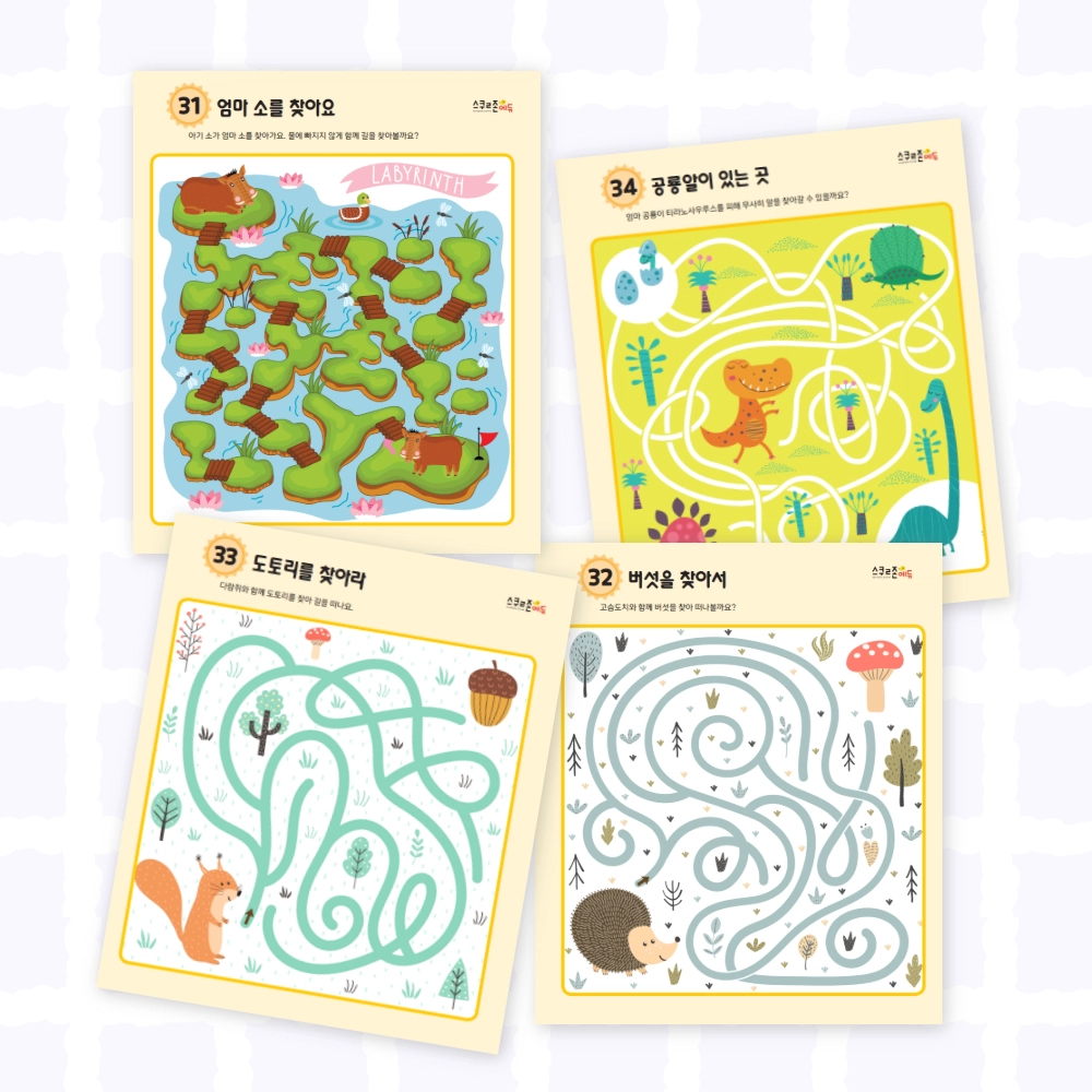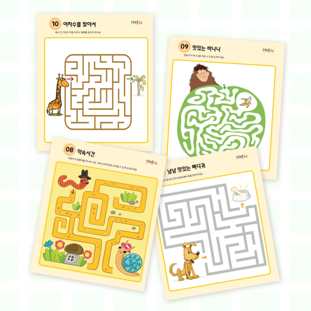 어질어질 미로찾기(아기동물) 시트지 모음 6(PDF / 6p / A4사이즈)