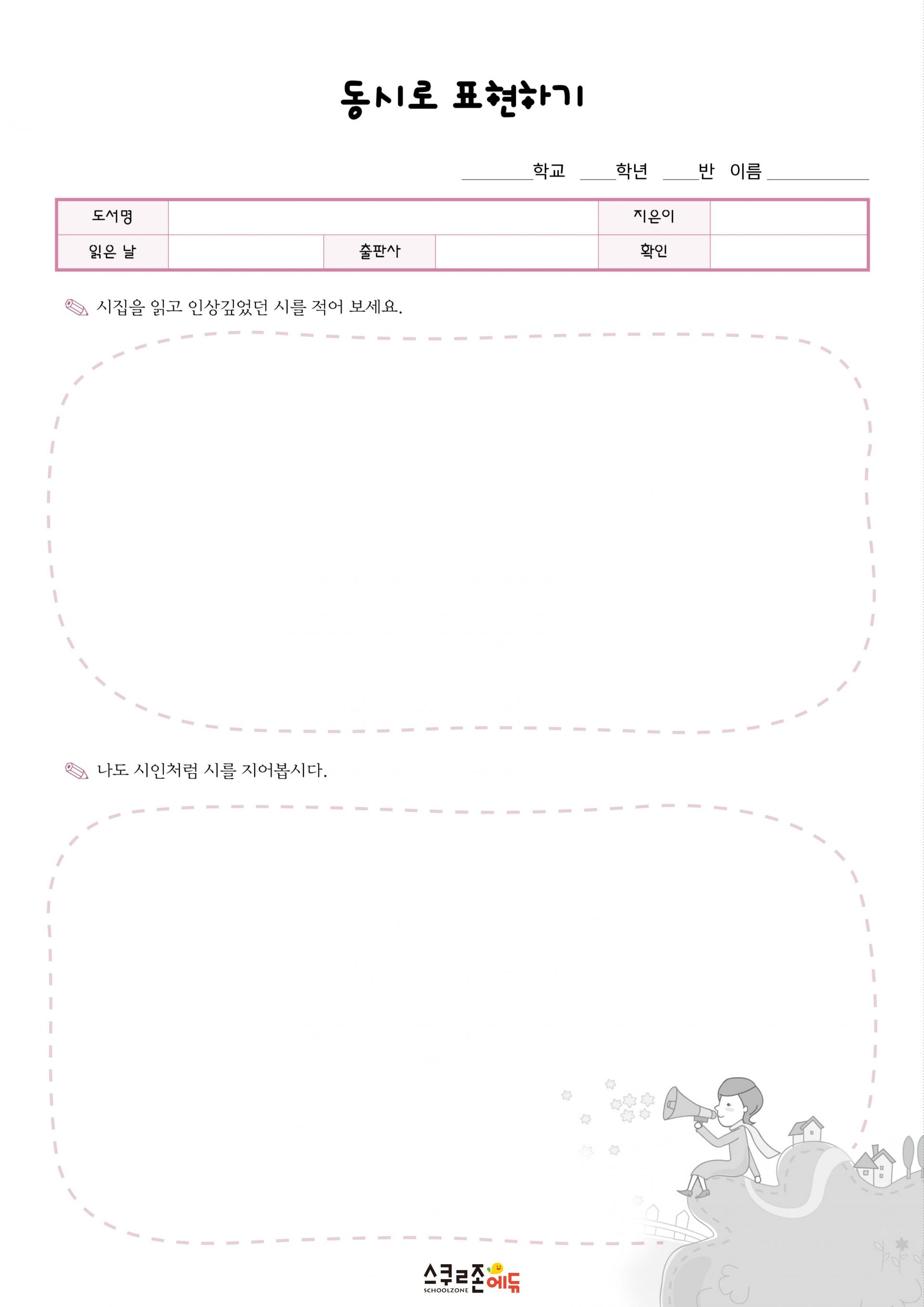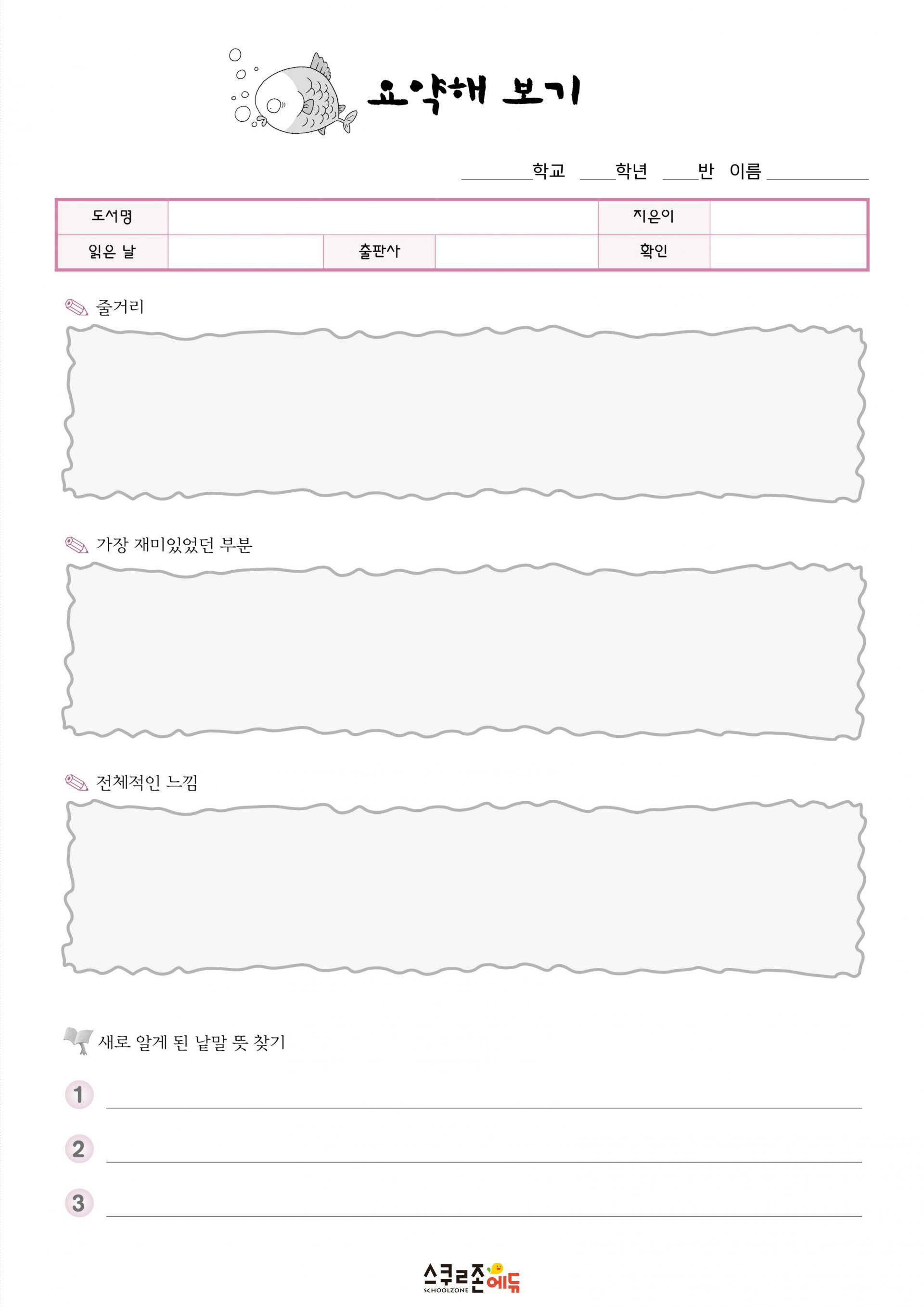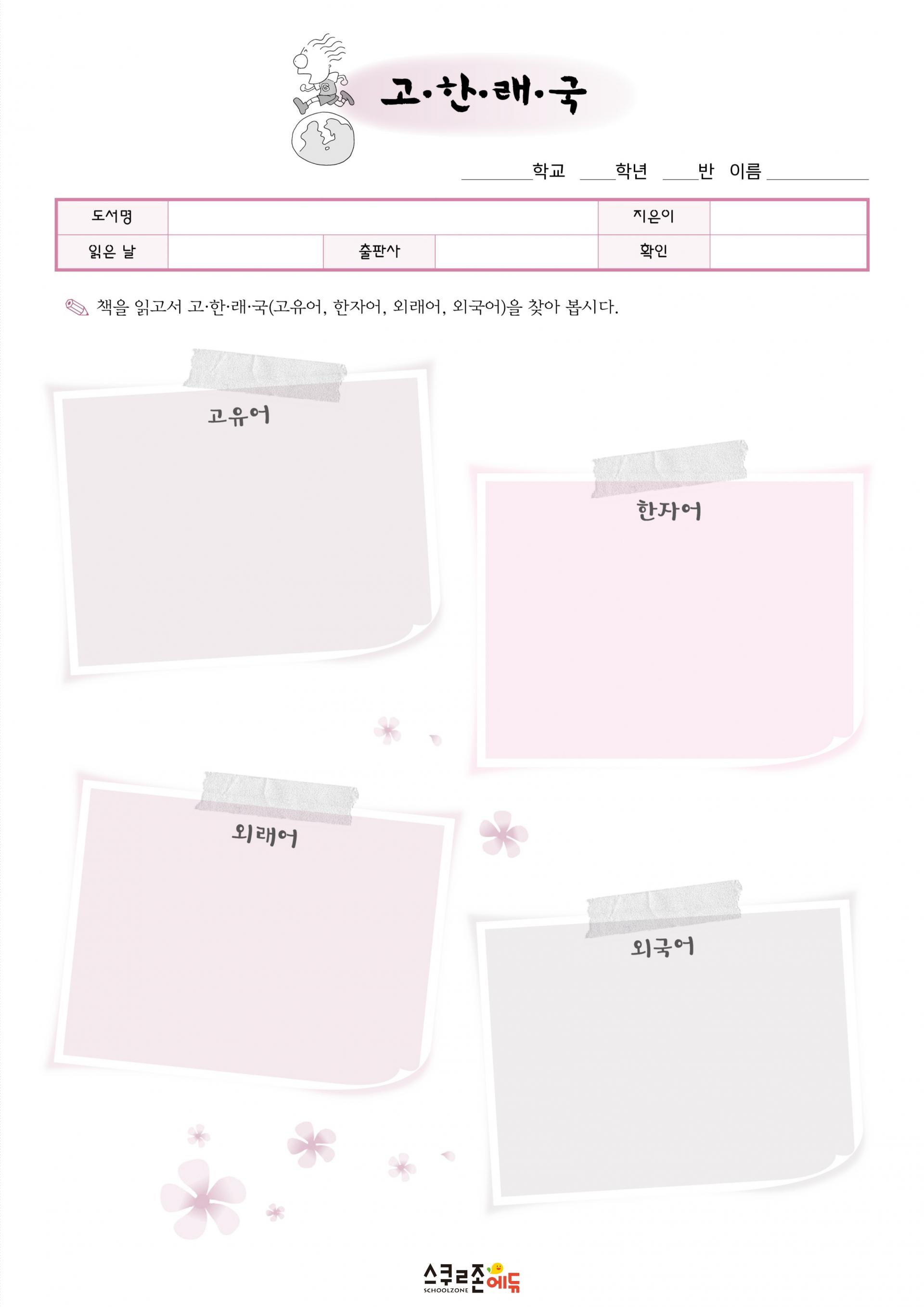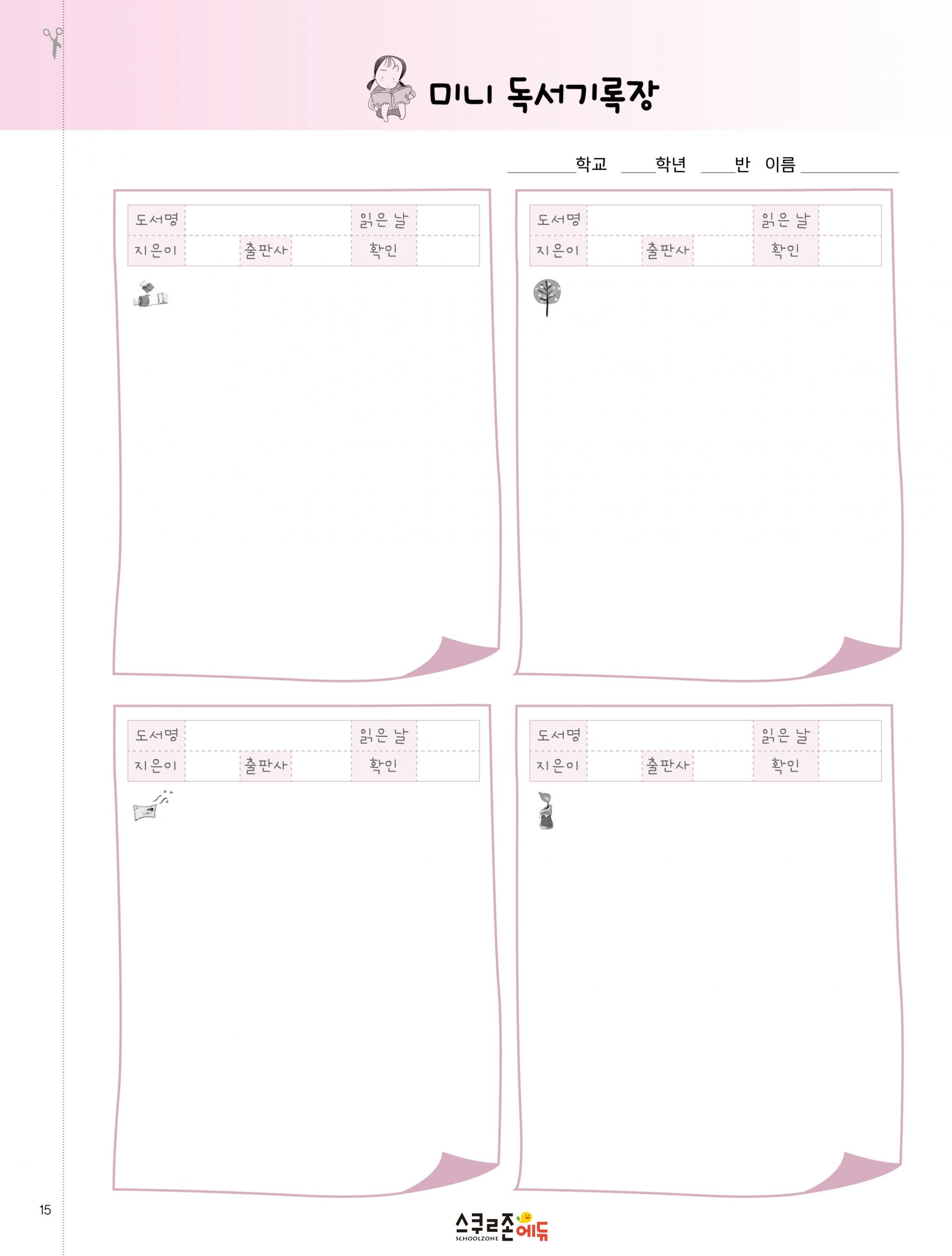 독서기록장(저학년용) 120여 가지 시트지 중 8가지 양식 모음 5