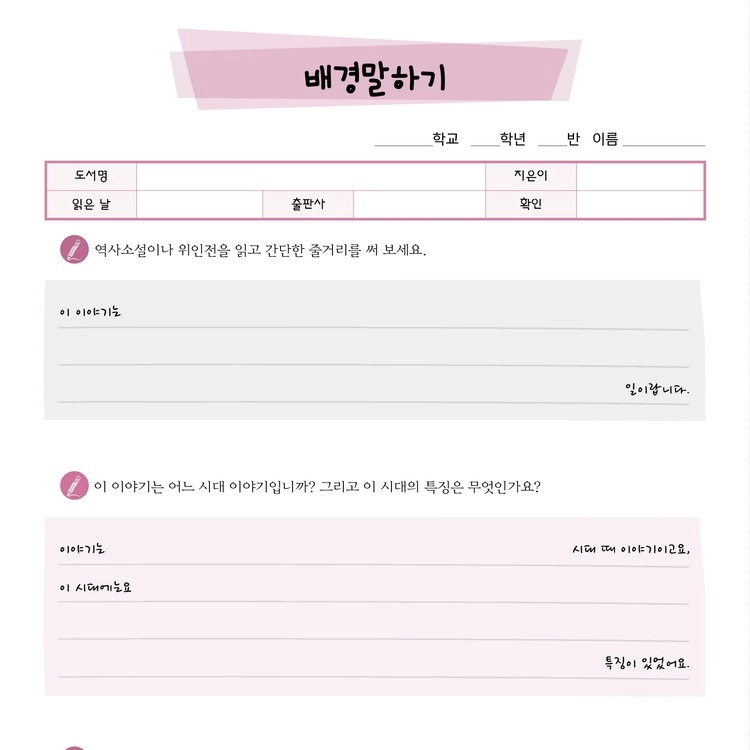 독서기록장(저학년용) 시트지 모음 6