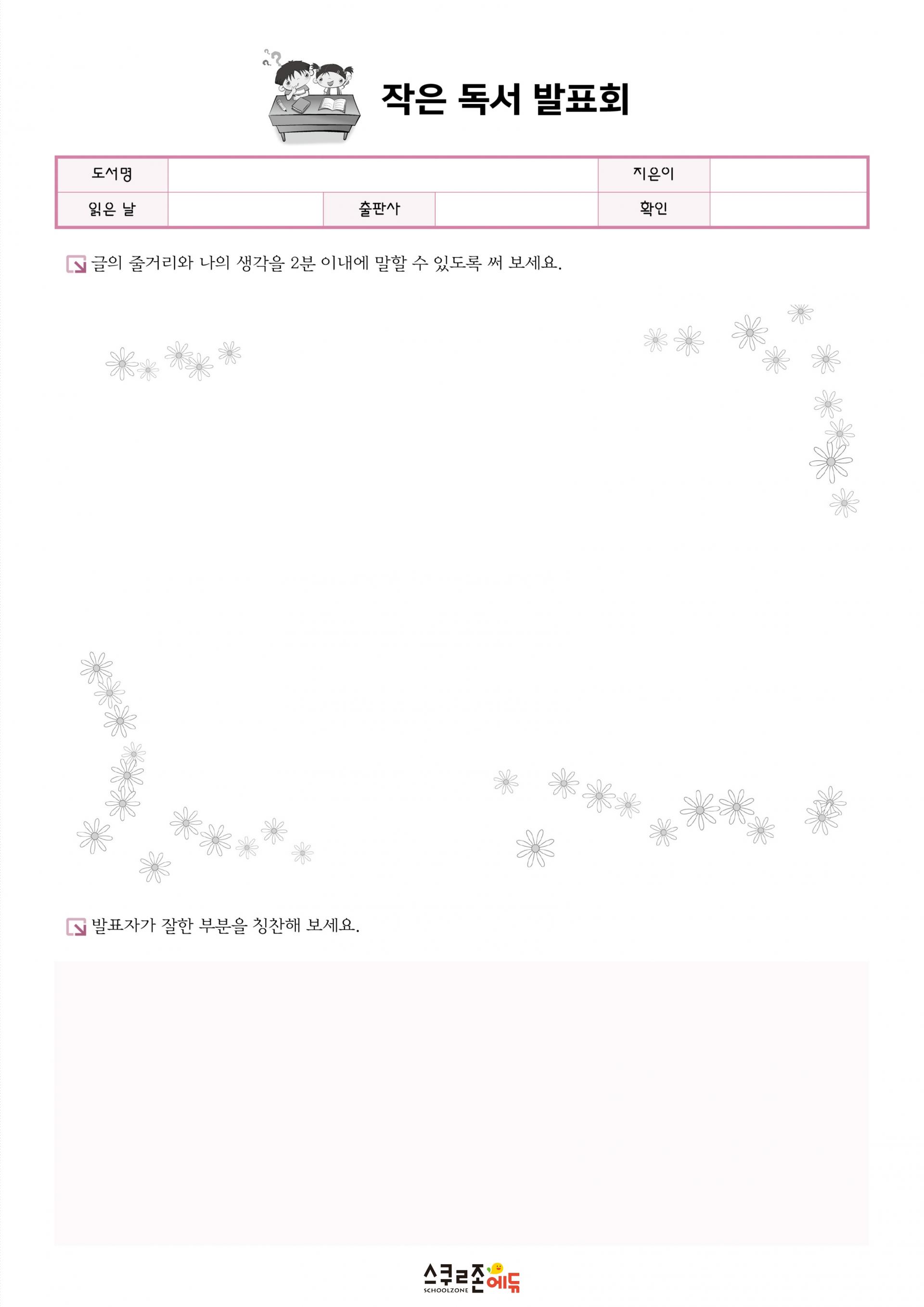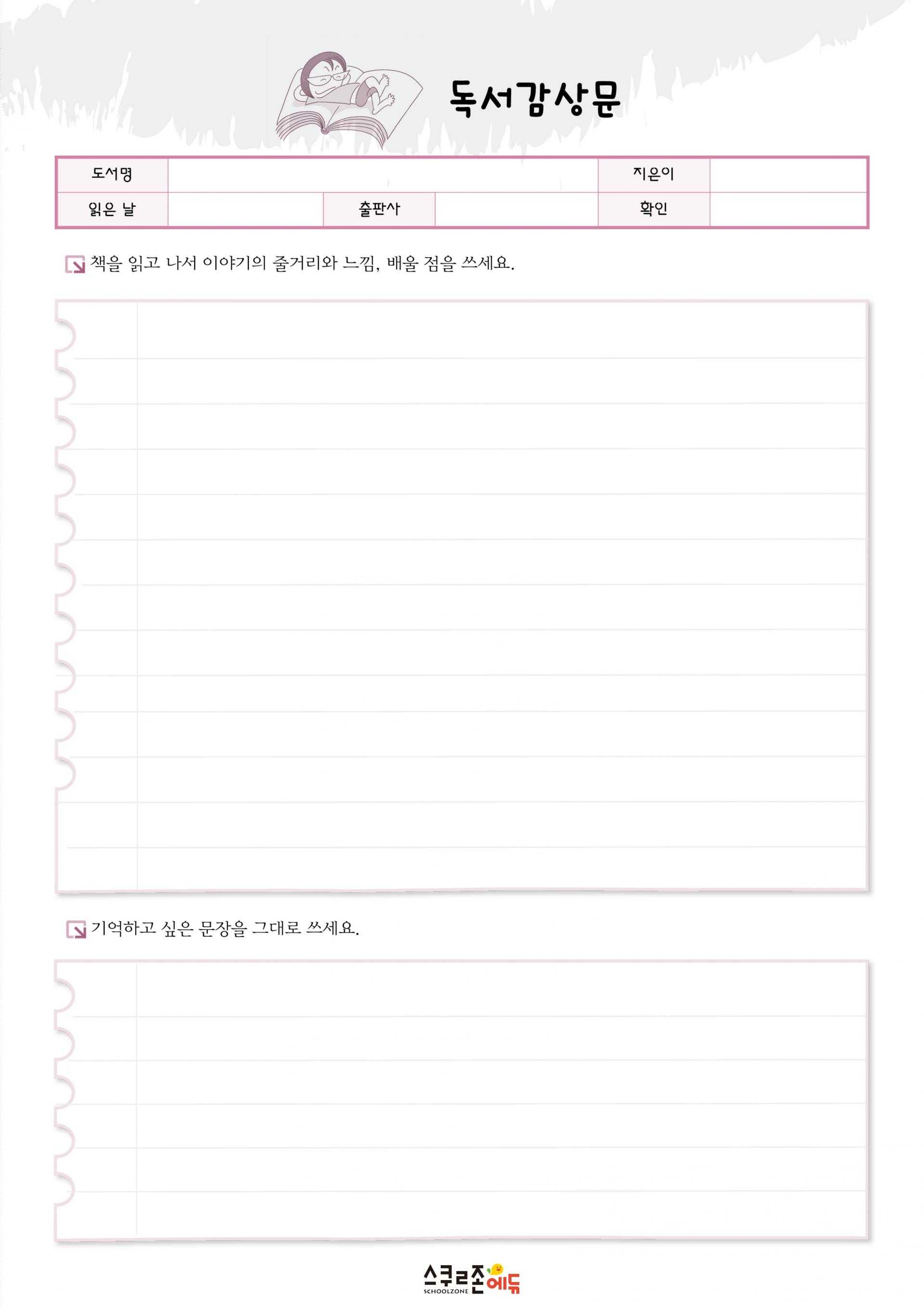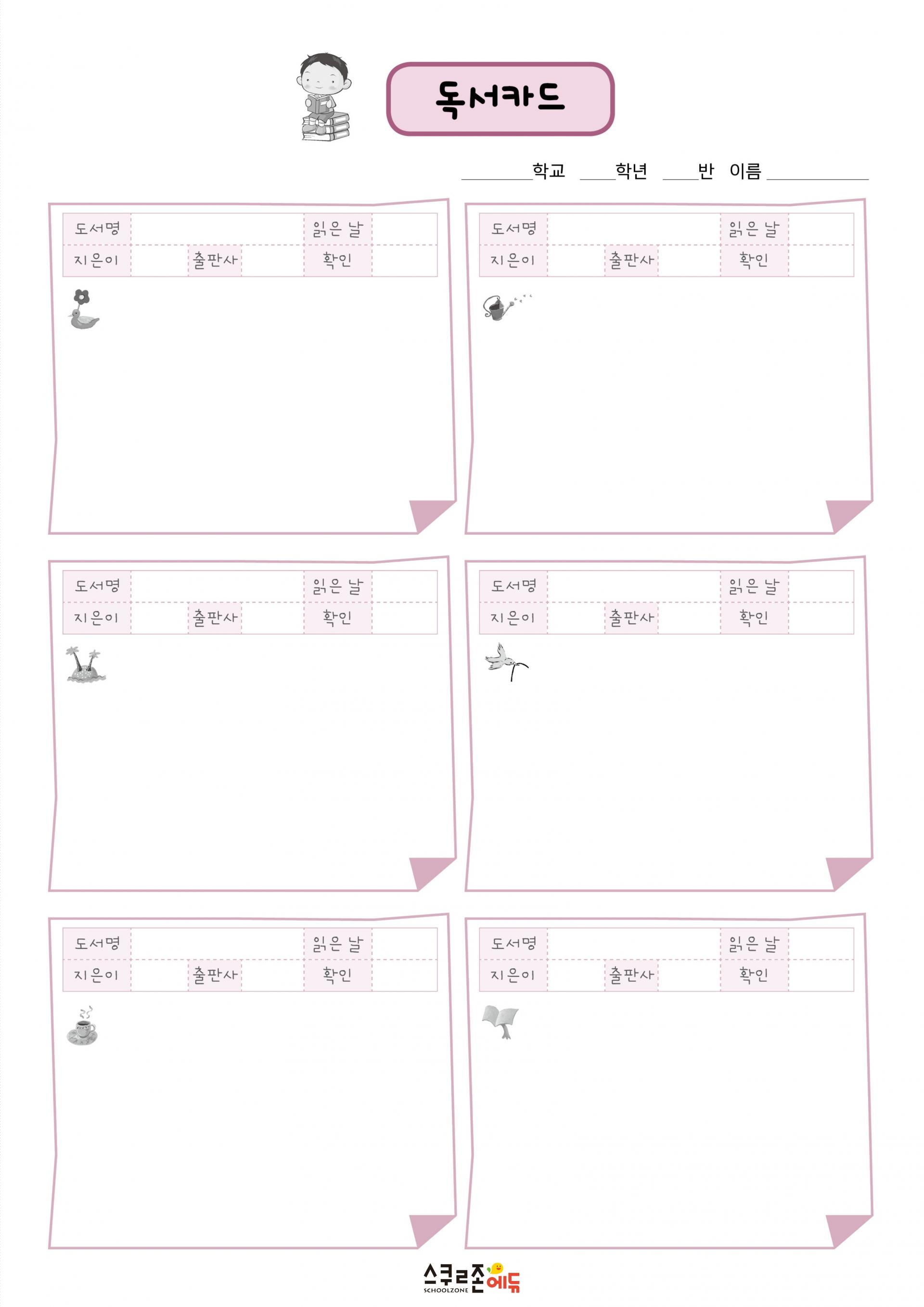 독서기록장(저학년용) 120여 가지 시트지 중 8가지 양식 모음 8