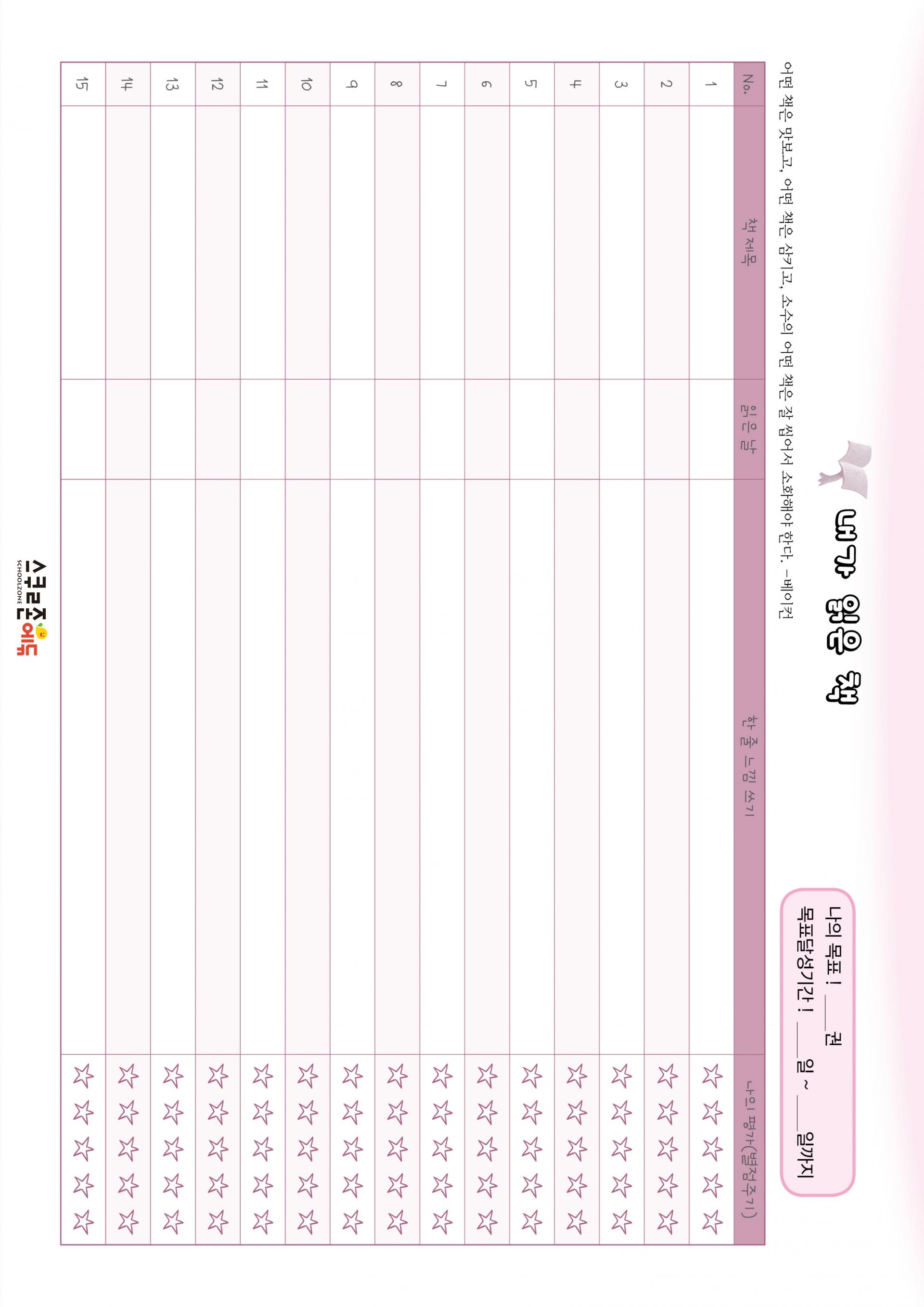 독서기록장(저학년용) 시트지 모음 12