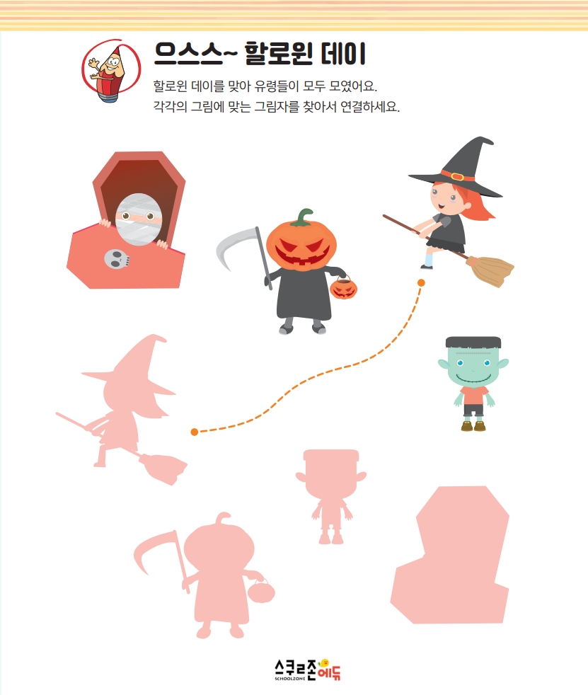 프린트 후, 알맞은 그림자에 선긋기 또는 동그라미 표시로 정답을 찾아보세요.