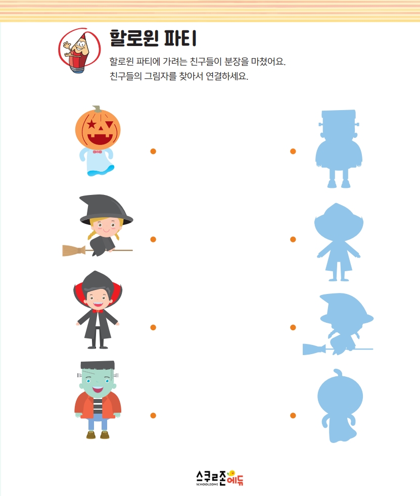프린트 후, 알맞은 그림자에 선긋기 또는 동그라미 표시로 정답을 찾아보세요.