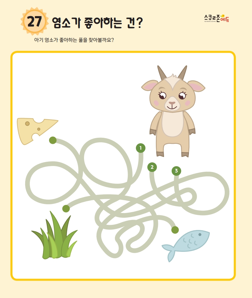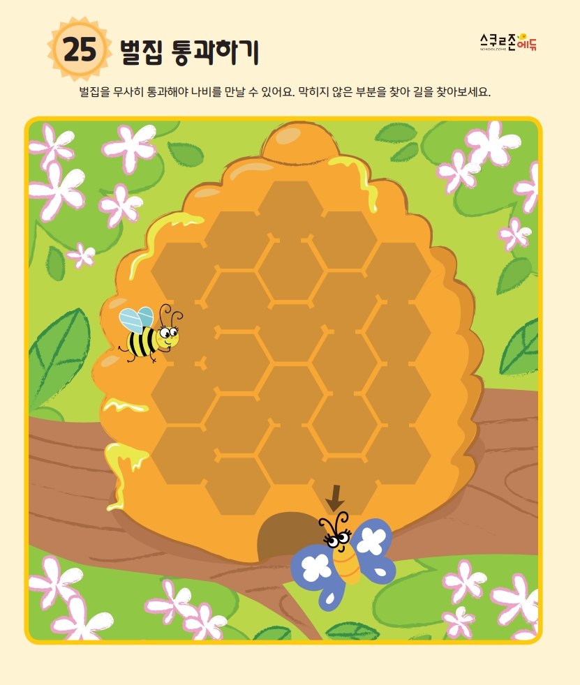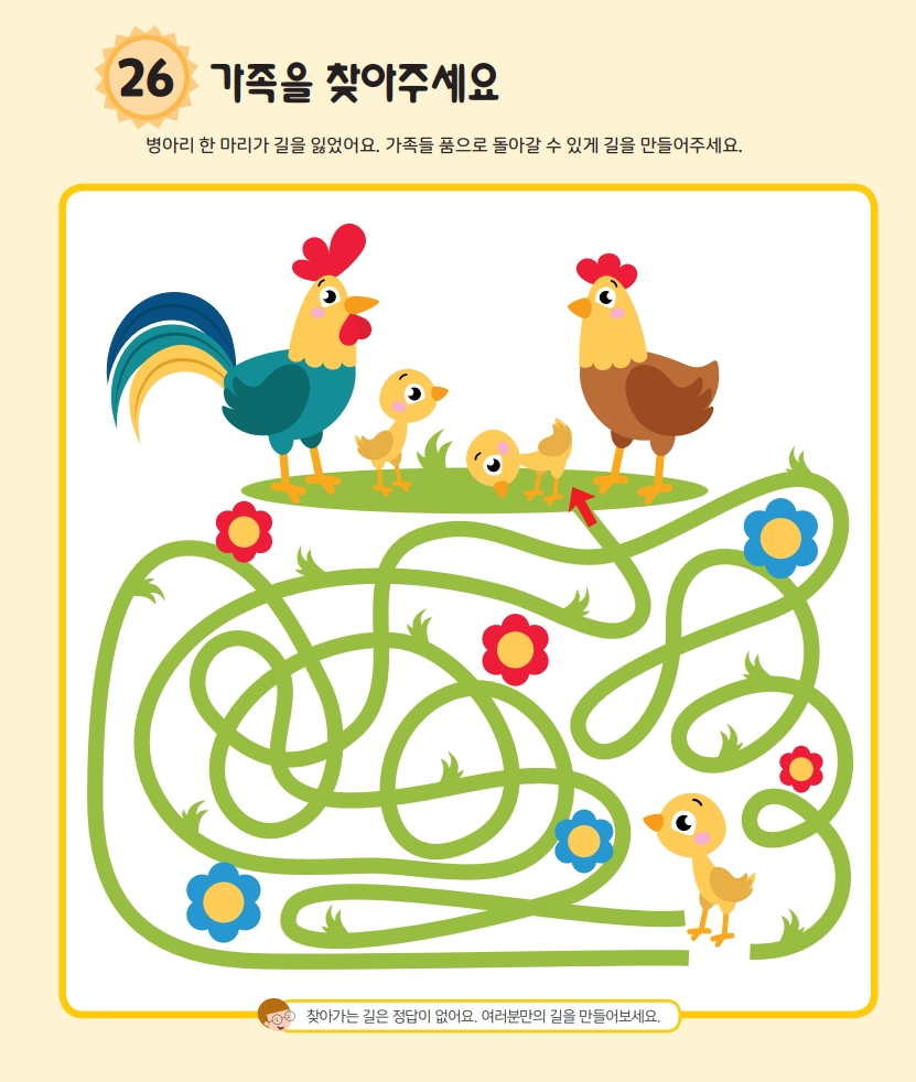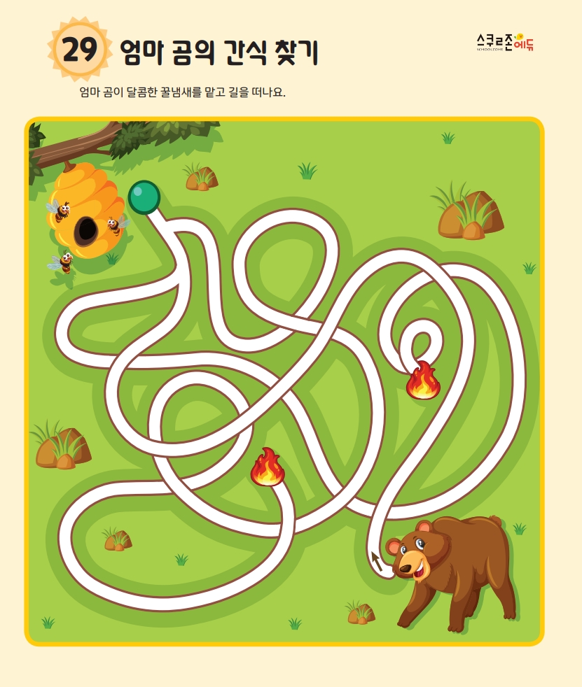 프린트 후 연필이나 색연필로 시작점부터 도착점까지 길을 따라 그려보세요.