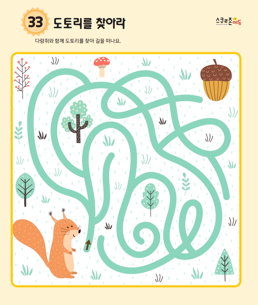 프린트 후 연필이나 색연필로 시작점부터 도착점까지 길을 따라 그려보세요.