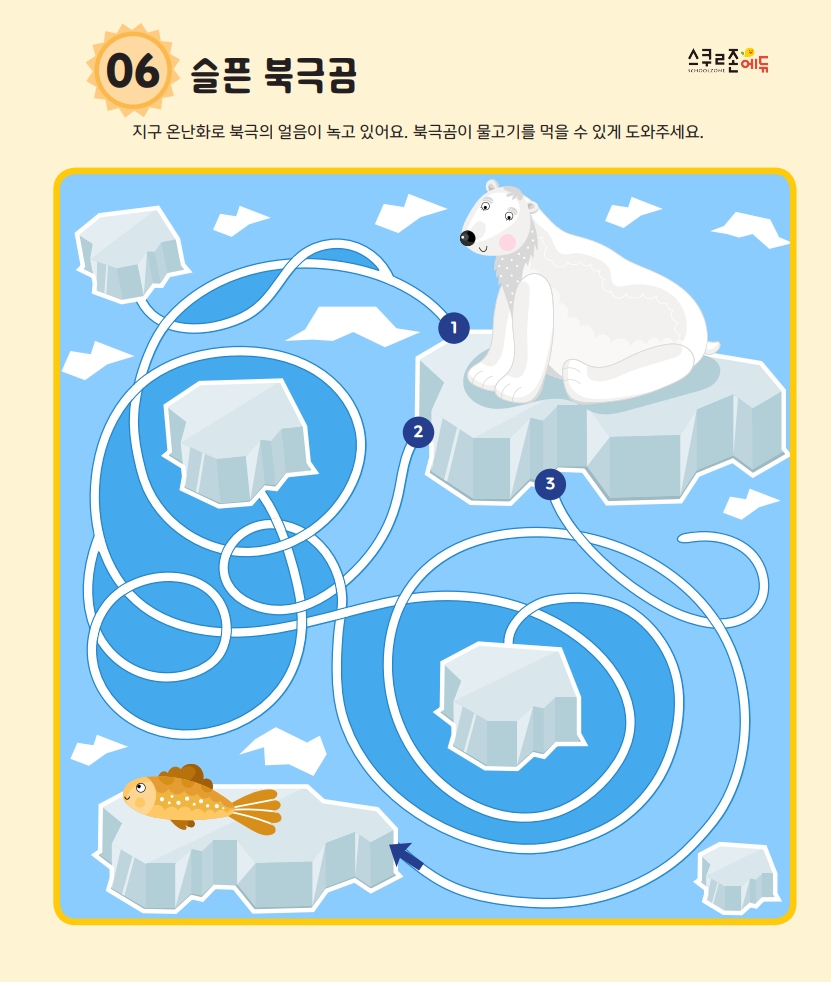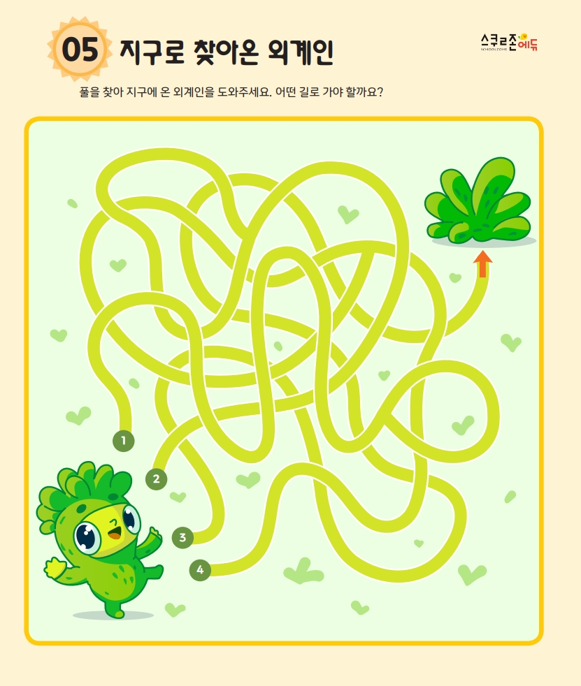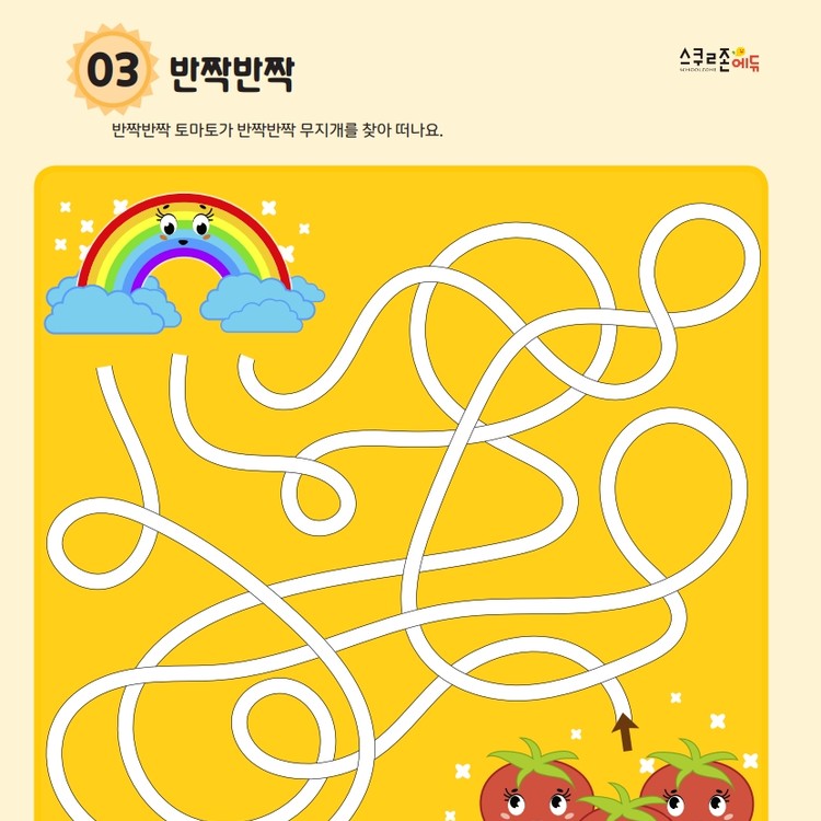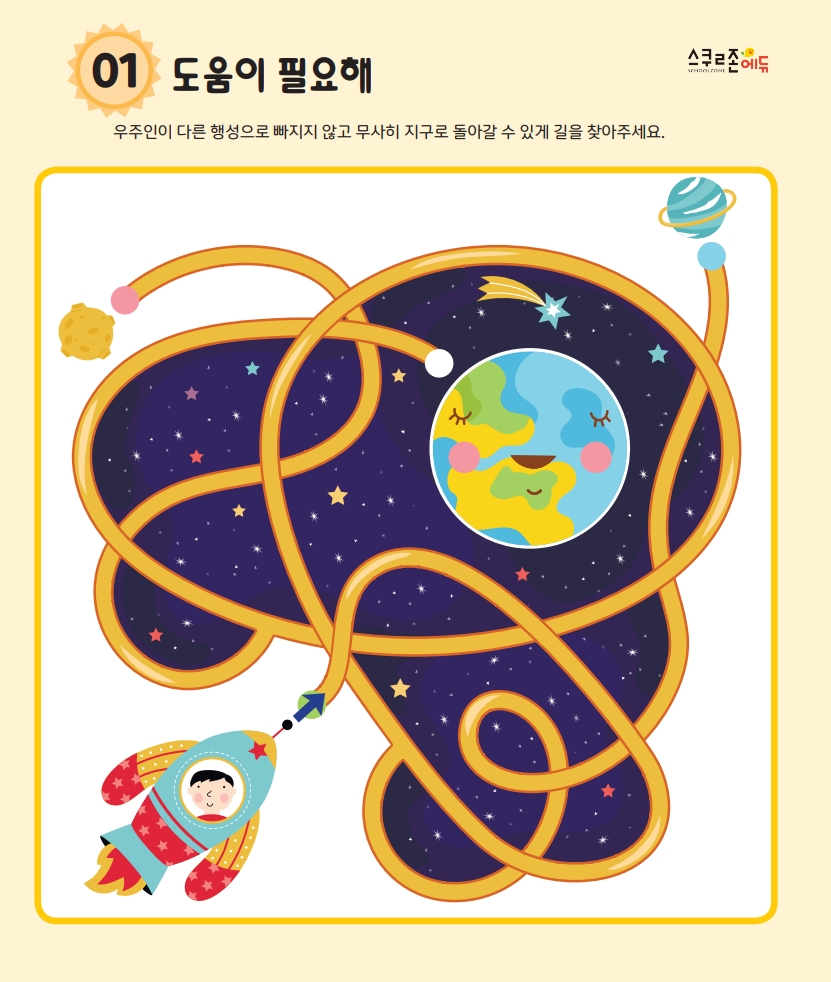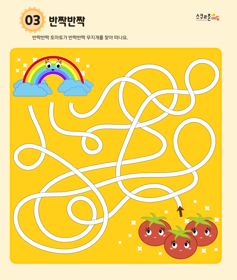 프린트 후 연필이나 색연필로 시작점부터 도착점까지 길을 따라 그려보세요.