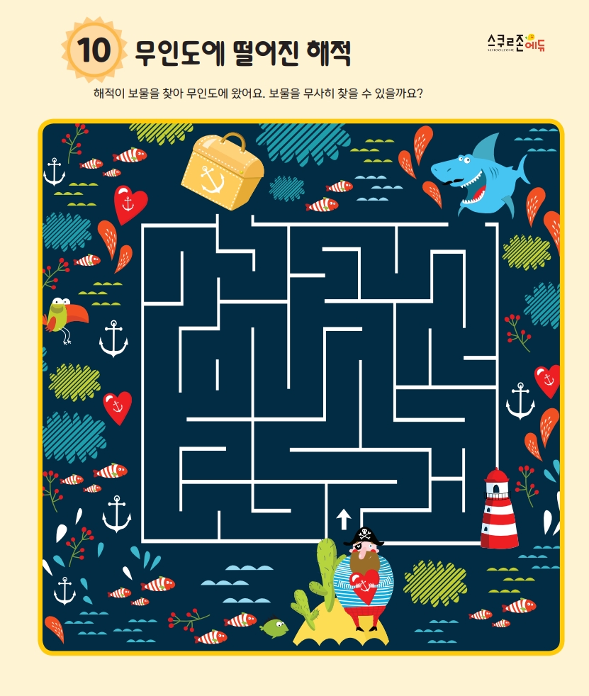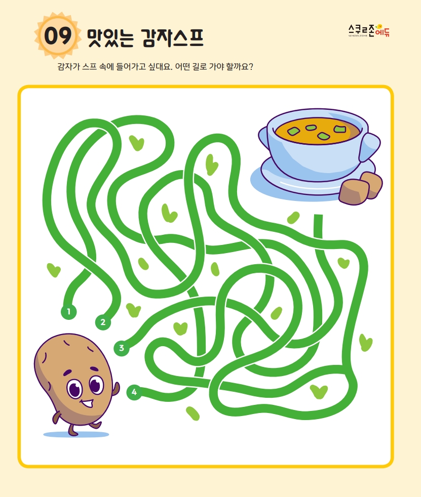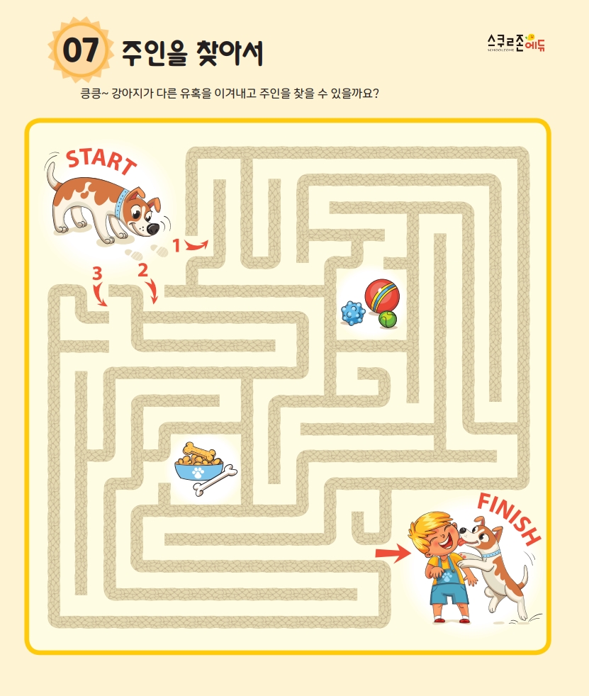 프린트 후 연필이나 색연필로 시작점부터 도착점까지 길을 따라 그려보세요.