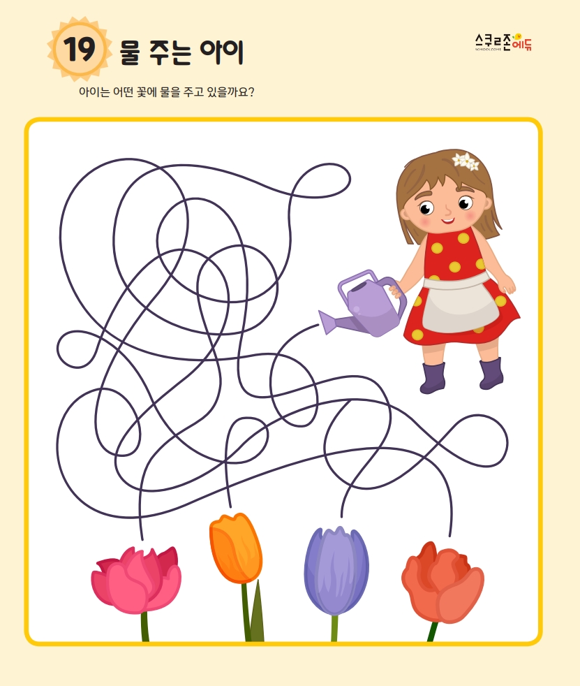 프린트 후 연필이나 색연필로 시작점부터 도착점까지 길을 따라 그려보세요.