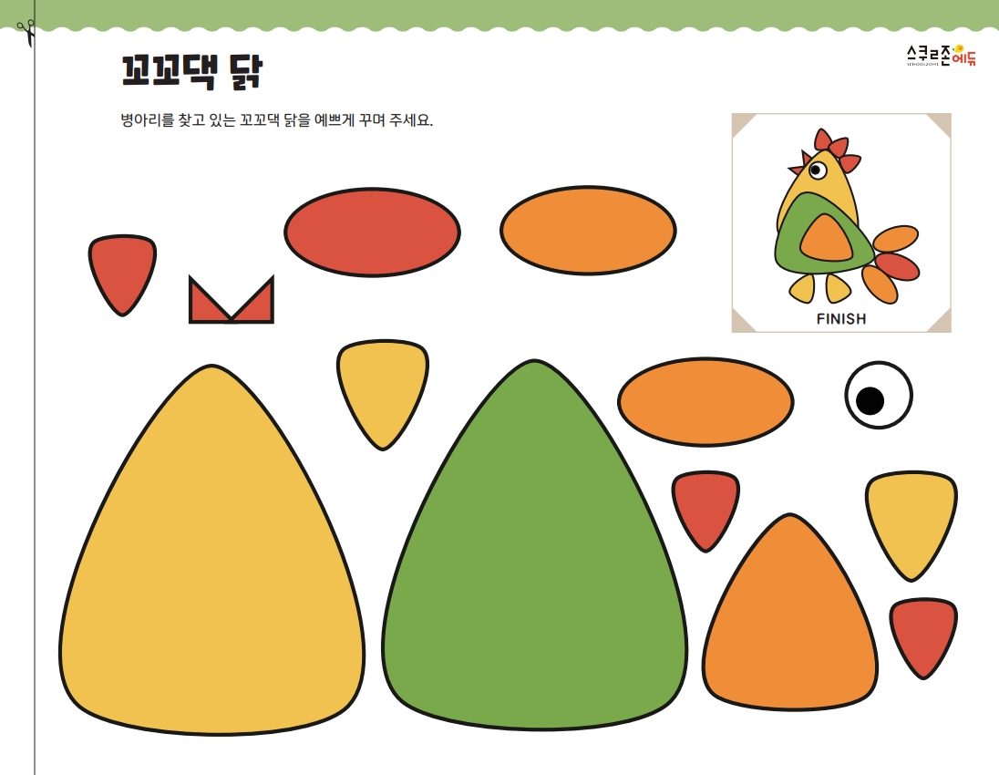 스스로 오리고 배치하면서 공간지각력과 창의적 사고력이 자라나요.