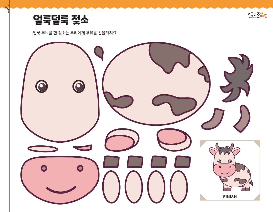 프린트 후, 도안을 가위로 오려서 지정된 위치에 풀로 붙여보세요.