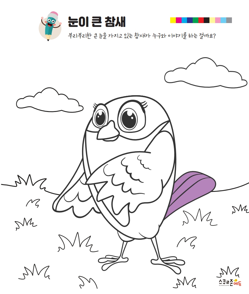 프린트한 그림을 자유롭게 색연필, 크레파스, 물감 등으로 색칠해 보세요.
