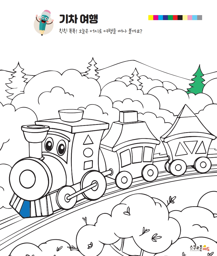 프린트한 그림을 자유롭게 색연필, 크레파스, 물감 등으로 색칠해 보세요.