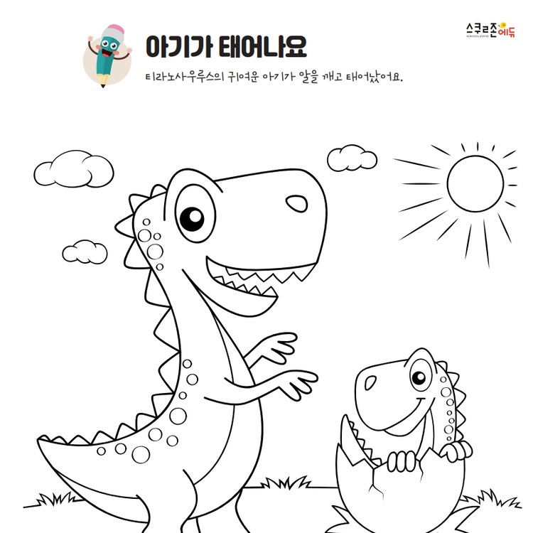 프린트한 그림을 자유롭게 색연필, 크레파스, 물감 등으로 색칠해 보세요.