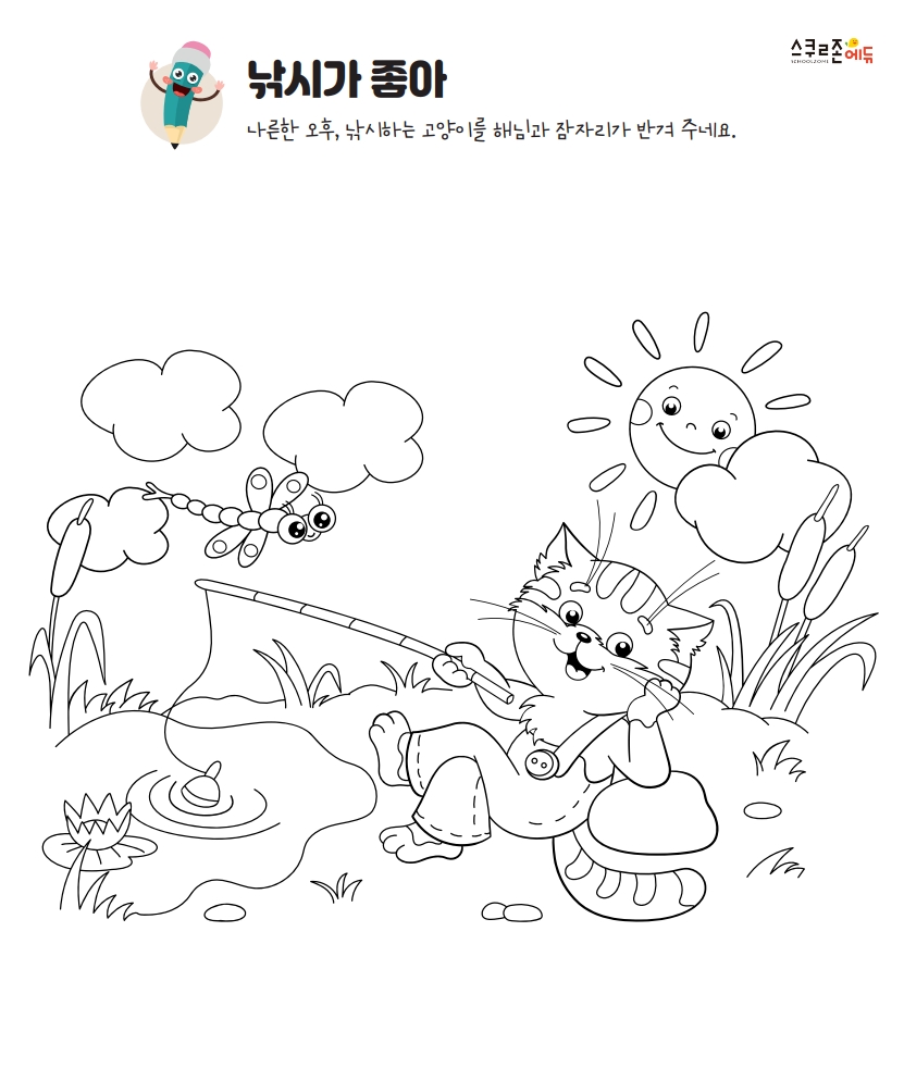 프린트한 그림을 자유롭게 색연필, 크레파스, 물감 등으로 색칠해 보세요.