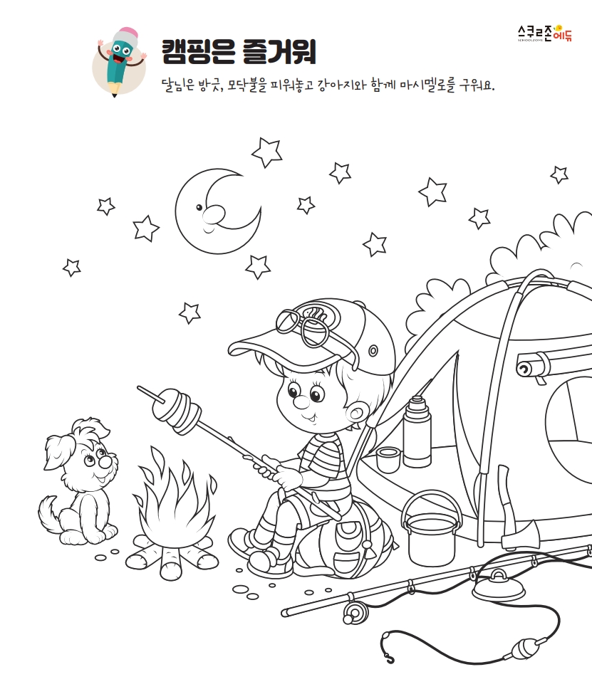 프린트한 그림을 자유롭게 색연필, 크레파스, 물감 등으로 색칠해 보세요.