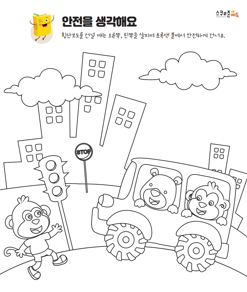 프린트한 그림을 자유롭게 색연필, 크레파스, 물감 등으로 색칠해 보세요.