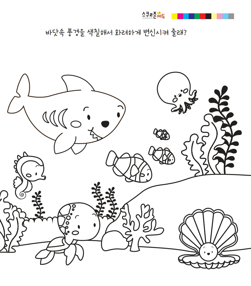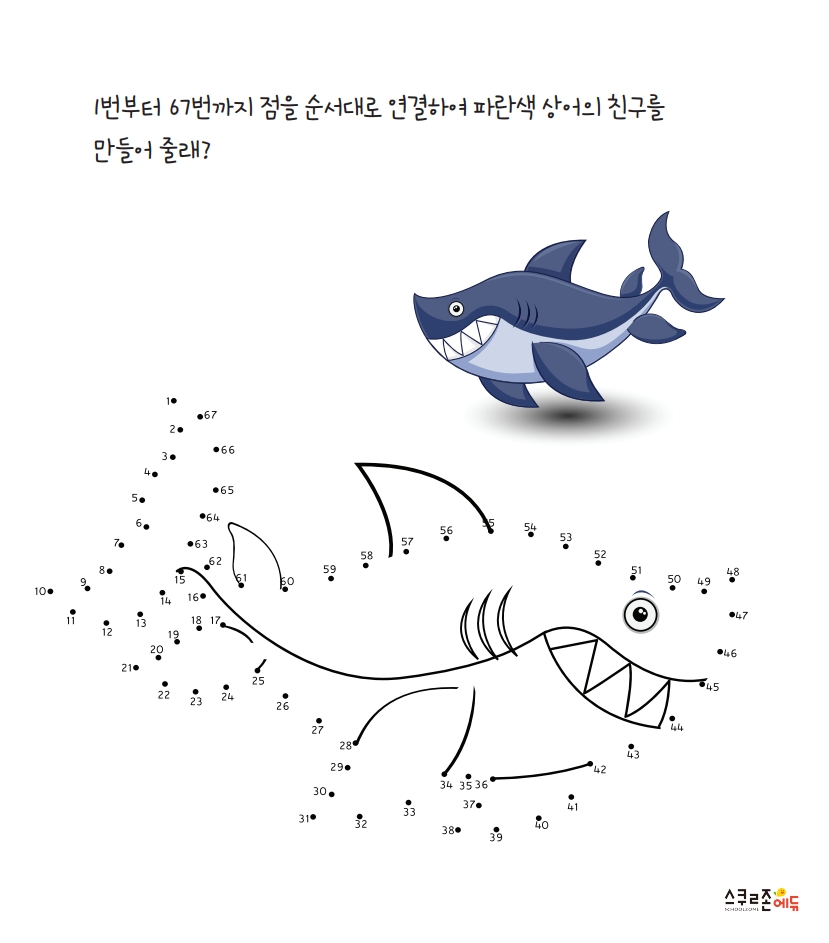 아이들이 좋아하는 상어! 색칠하기, 선긋기, 오리고 붙이기, 미로찾기 등