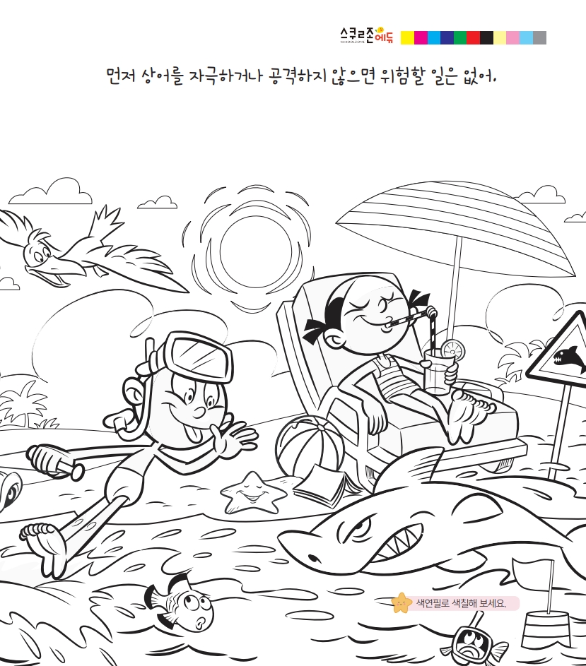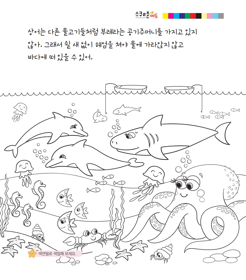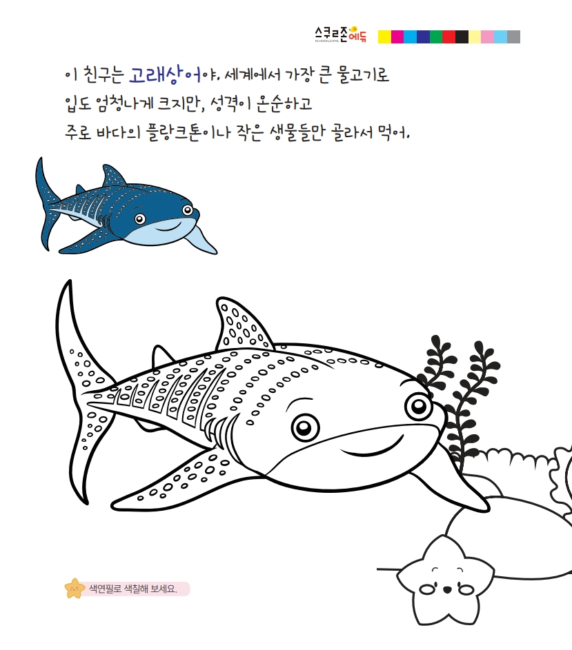 상어의 생김새와 종류, 몸의 구조를 그리고 색칠하며 관찰하고 배워요.