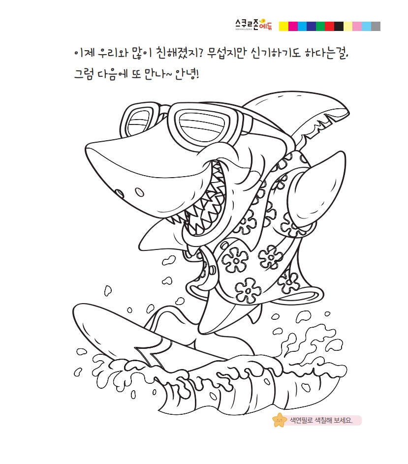 상어의 생김새와 종류, 몸의 구조를 그리고 색칠하며 관찰하고 배워요.