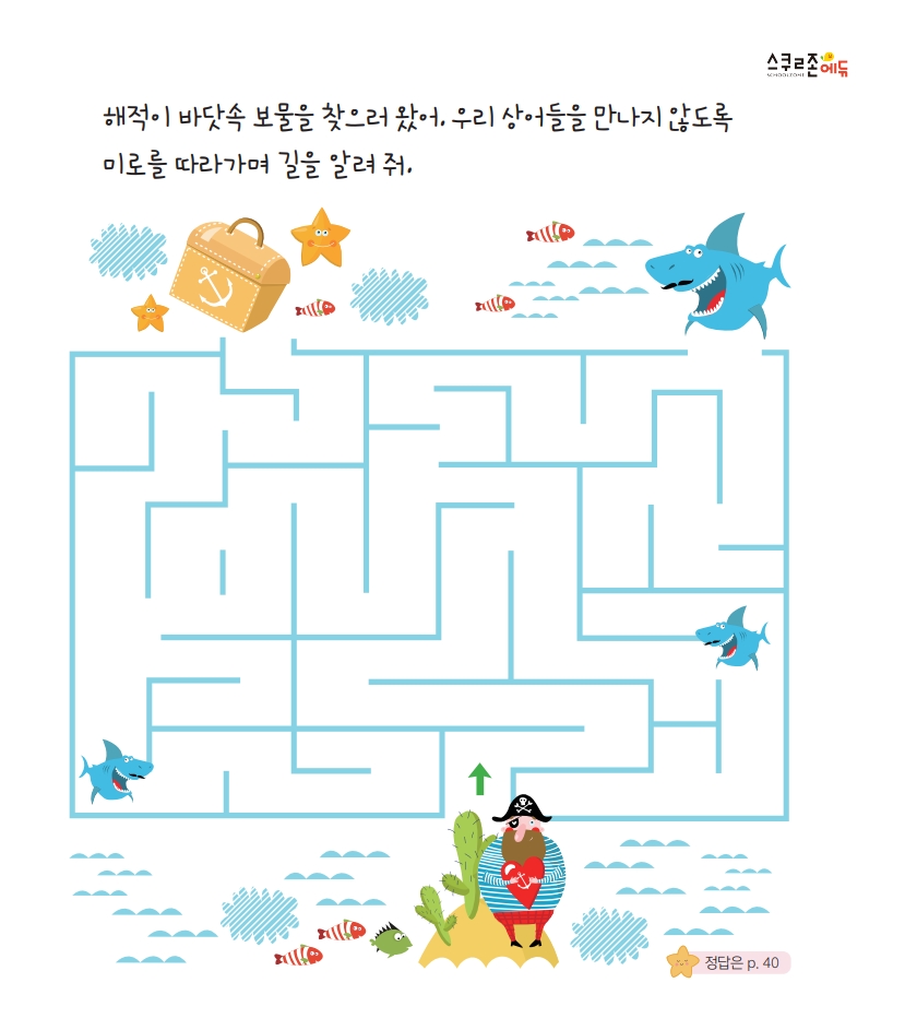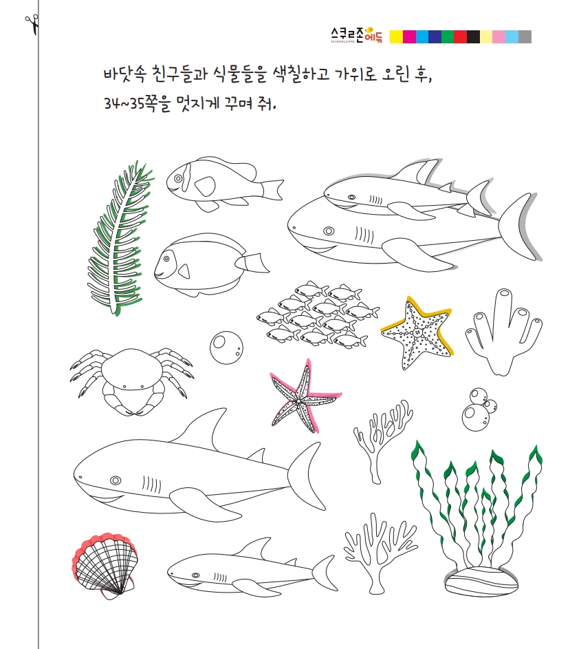 아이들이 좋아하는 상어! 색칠하기, 선긋기, 오리고 붙이기, 미로찾기 등