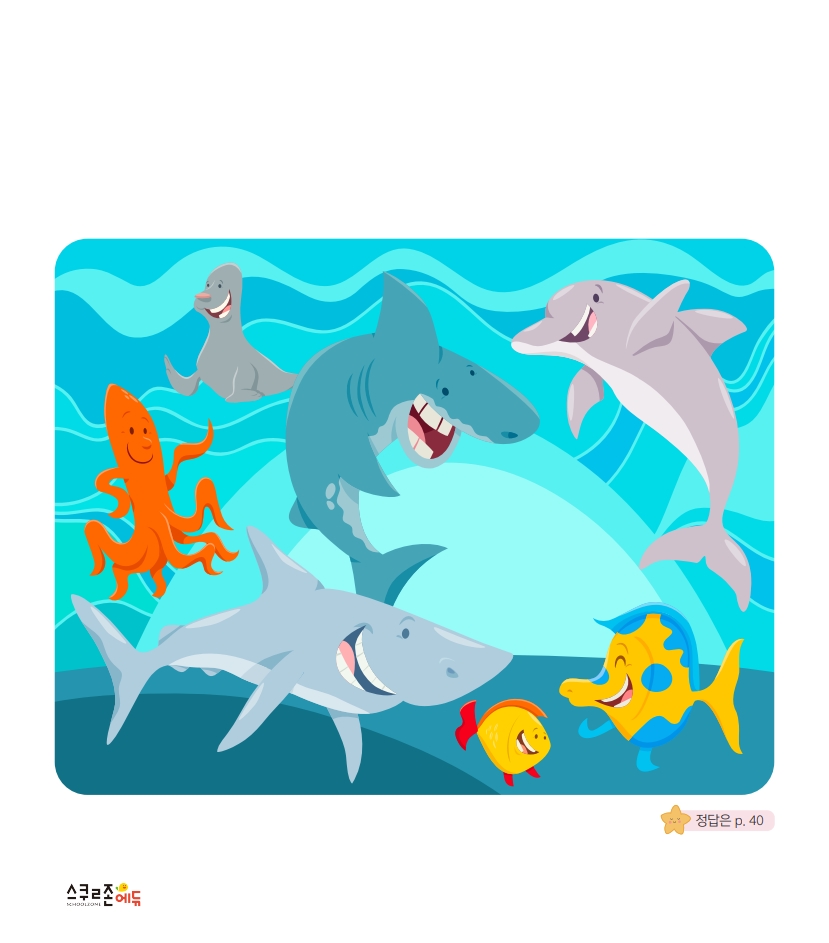 놀이처럼 즐기며 상어와 바다 생물에 대해 재미있게 익혀보세요!