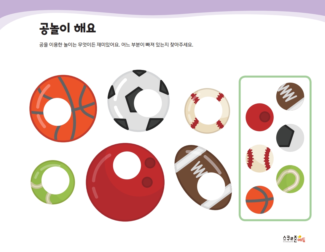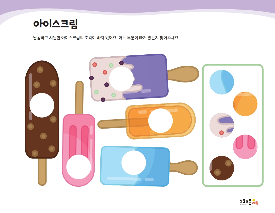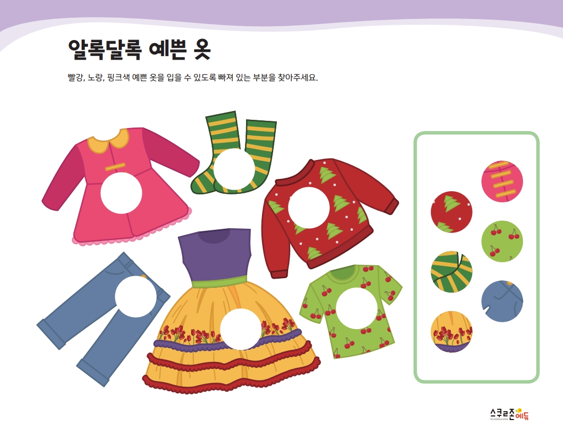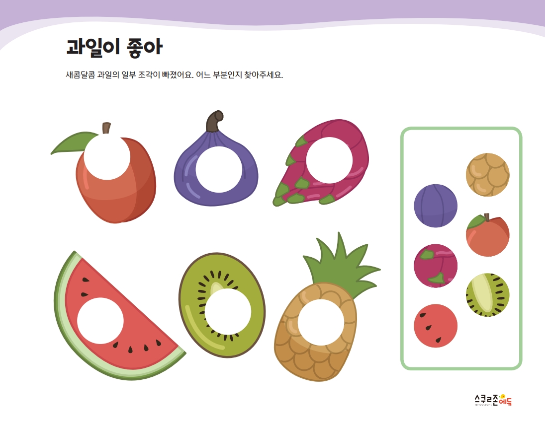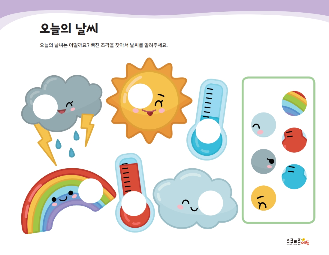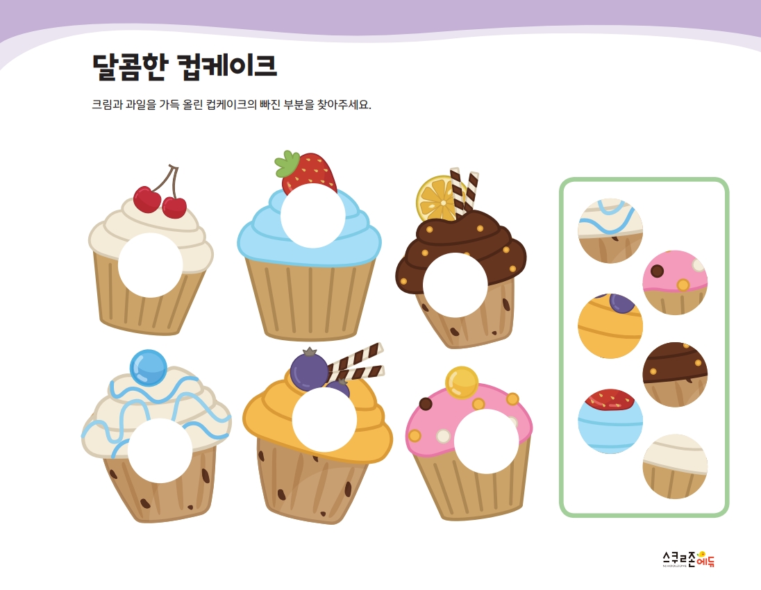 오른쪽 박스 안의 그림을 오린 후, 왼쪽 그림에 돌려가며 맞춰요.