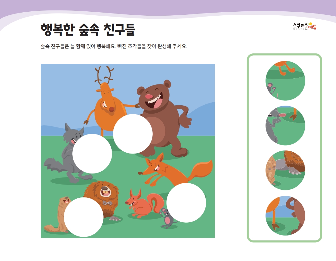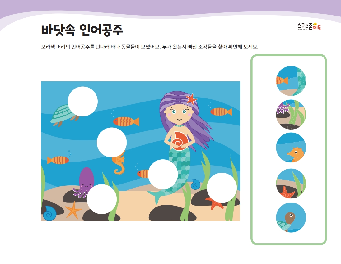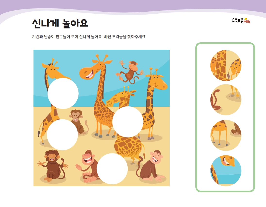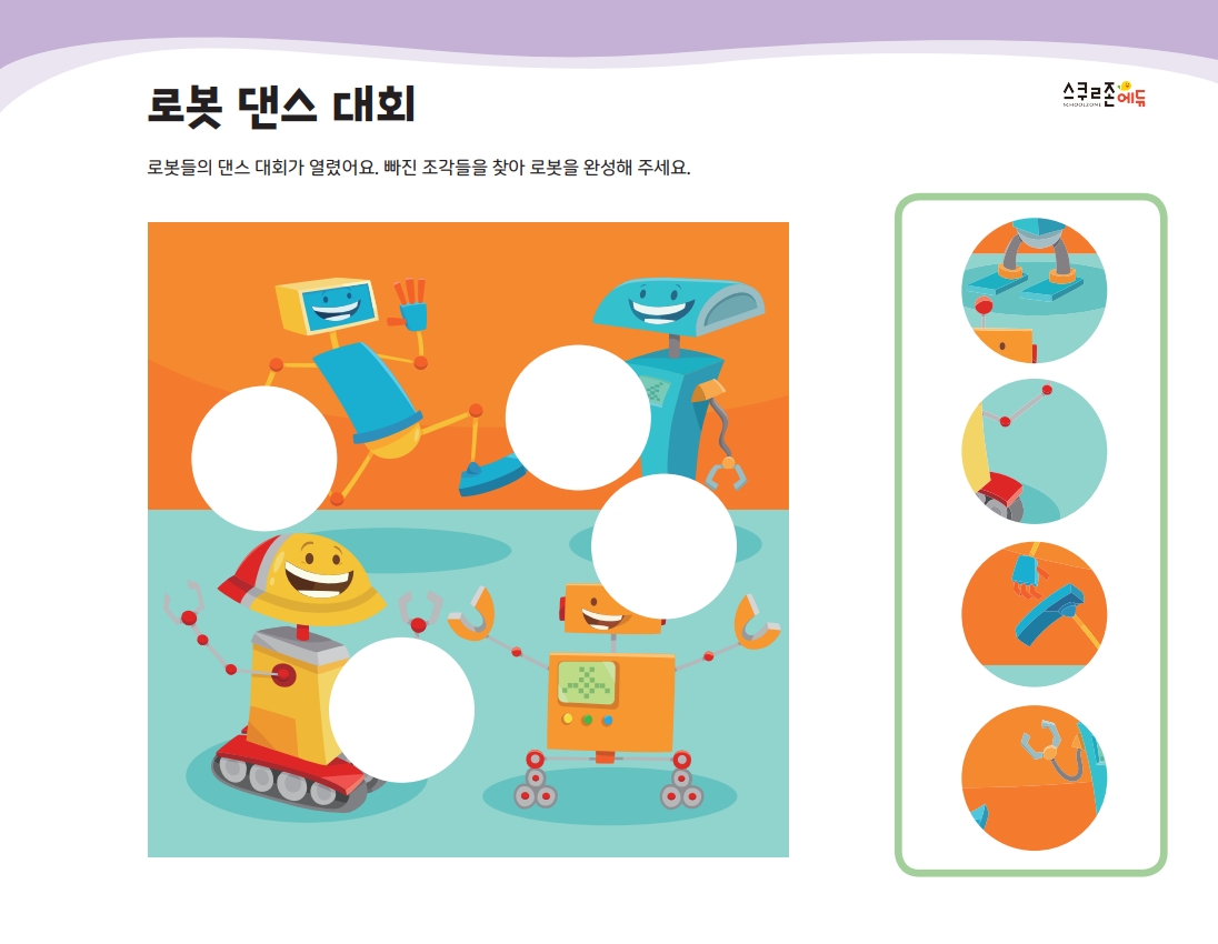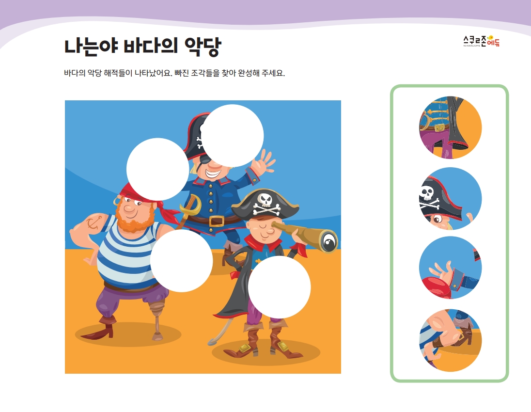 오른쪽 박스 안의 그림을 오린 후, 왼쪽 그림에 돌려가며 맞춰요.