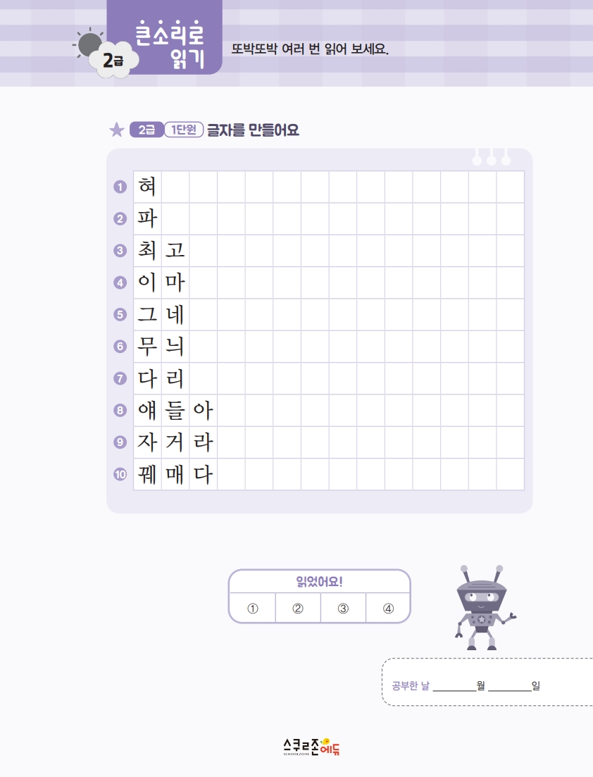〈읽기-쓰기-연습〉의 3단계 학습이 핵심이며,