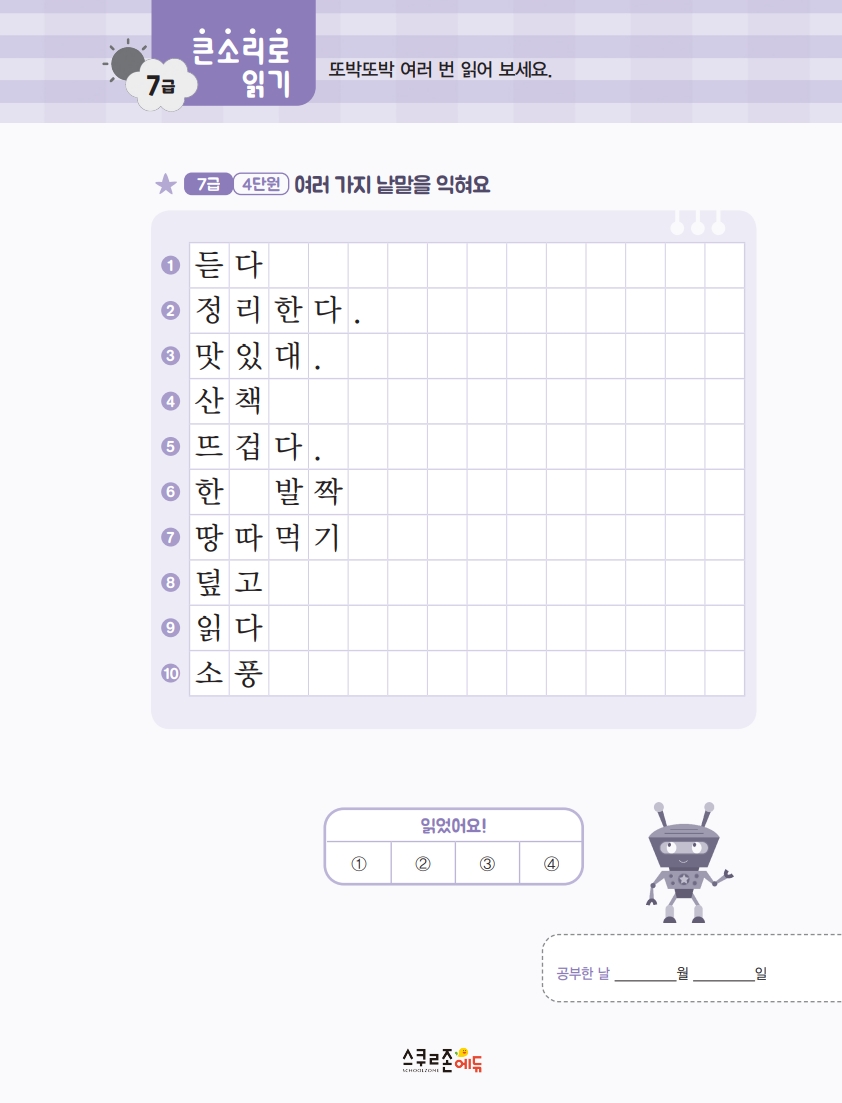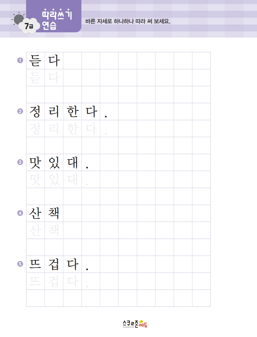 1학년 1학기 급수표 받아쓰기 시트지 모음 7