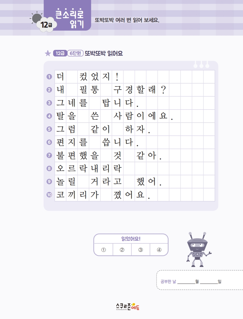 1학년 1학기 급수표 받아쓰기 시트지 모음 12