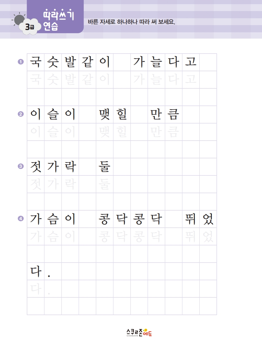 〈읽기-쓰기-연습〉의 3단계 학습이 핵심이며,