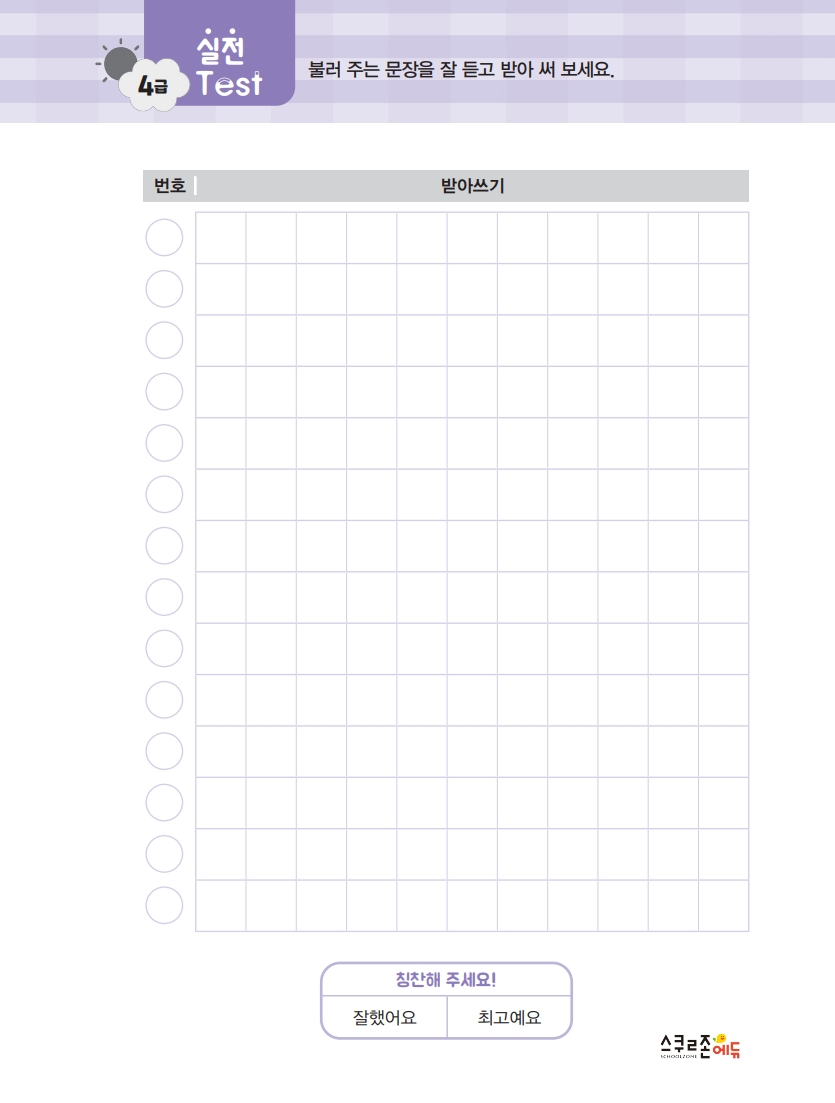 2학년 1학기 급수표 받아쓰기 시트지 모음 4