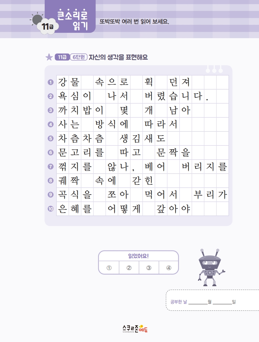 〈읽기-쓰기-연습〉의 3단계 학습이 핵심이며,