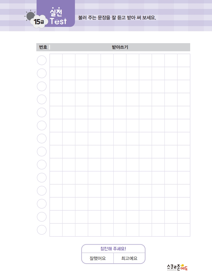 2학년 1학기 급수표 받아쓰기 시트지 모음 15