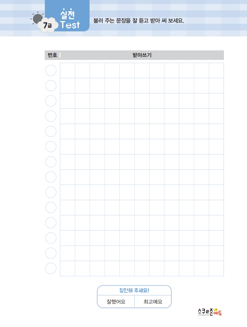 2학년 2학기 급수표 받아쓰기 시트지 모음 7