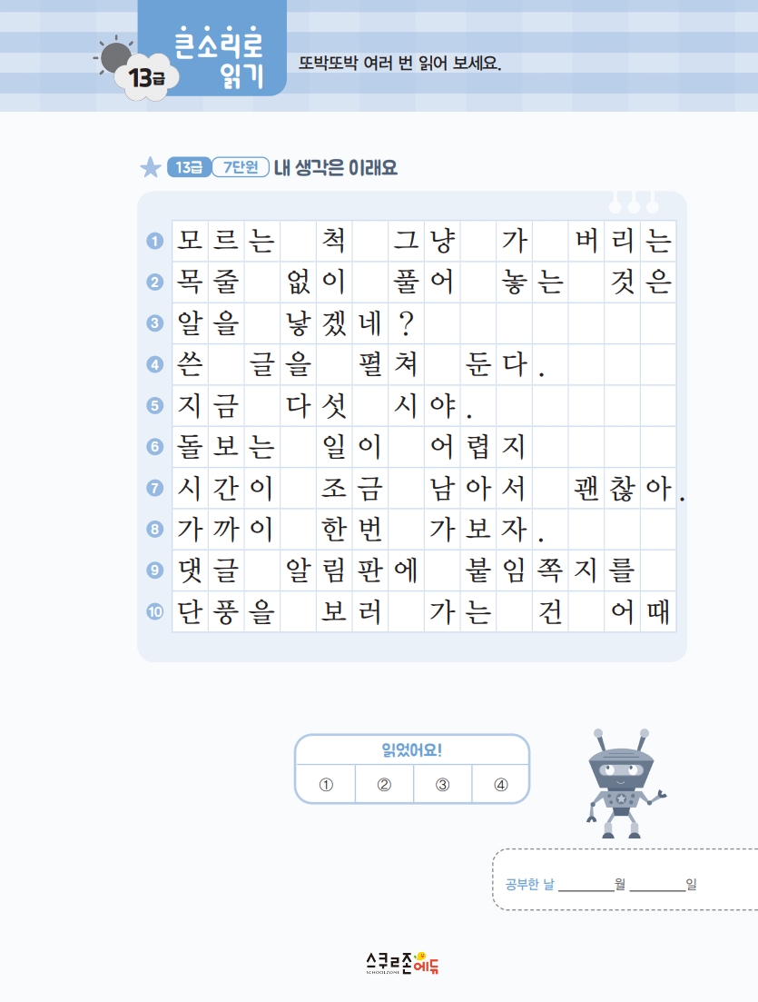 〈읽기-쓰기-연습〉의 3단계 학습이 핵심이며,
