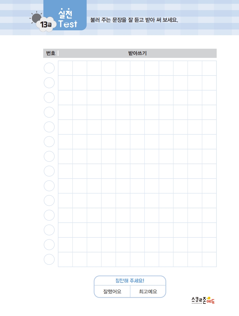 2학년 2학기 급수표 받아쓰기 시트지 모음 13