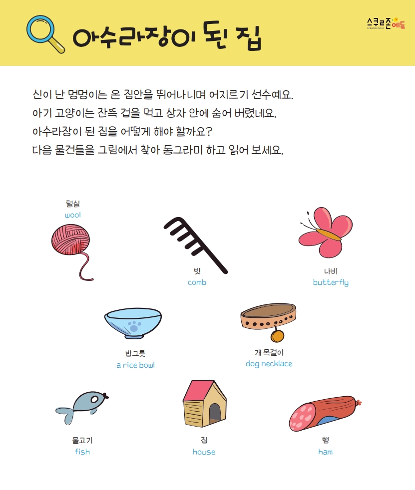 프린트 후, 그림 속에 숨은 사물을 하나씩 동그라미 또는 색칠하며 찾아보세요.