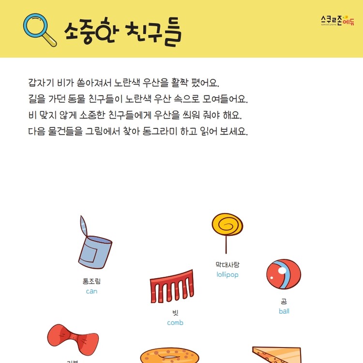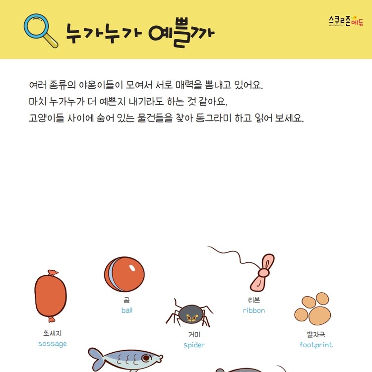 프린트 후, 그림 속에 숨은 사물을 하나씩 동그라미 또는 색칠하며 찾아보세요.