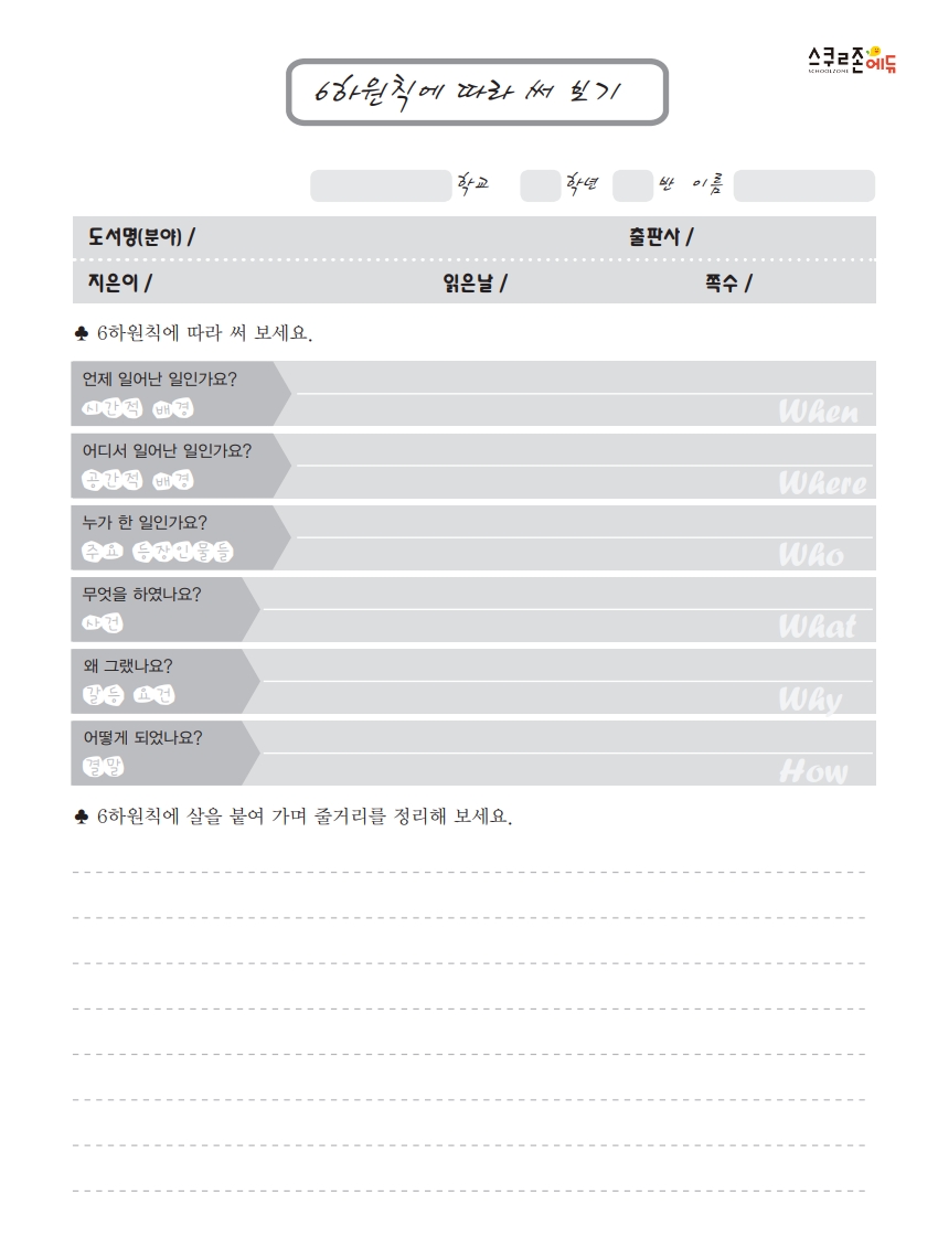 | 1. 6하 원칙에 따라 써 보기