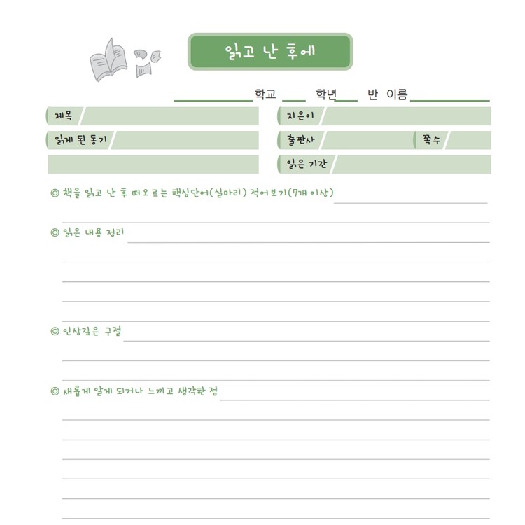 독서기록장(B) 8가지 양식 모음 5