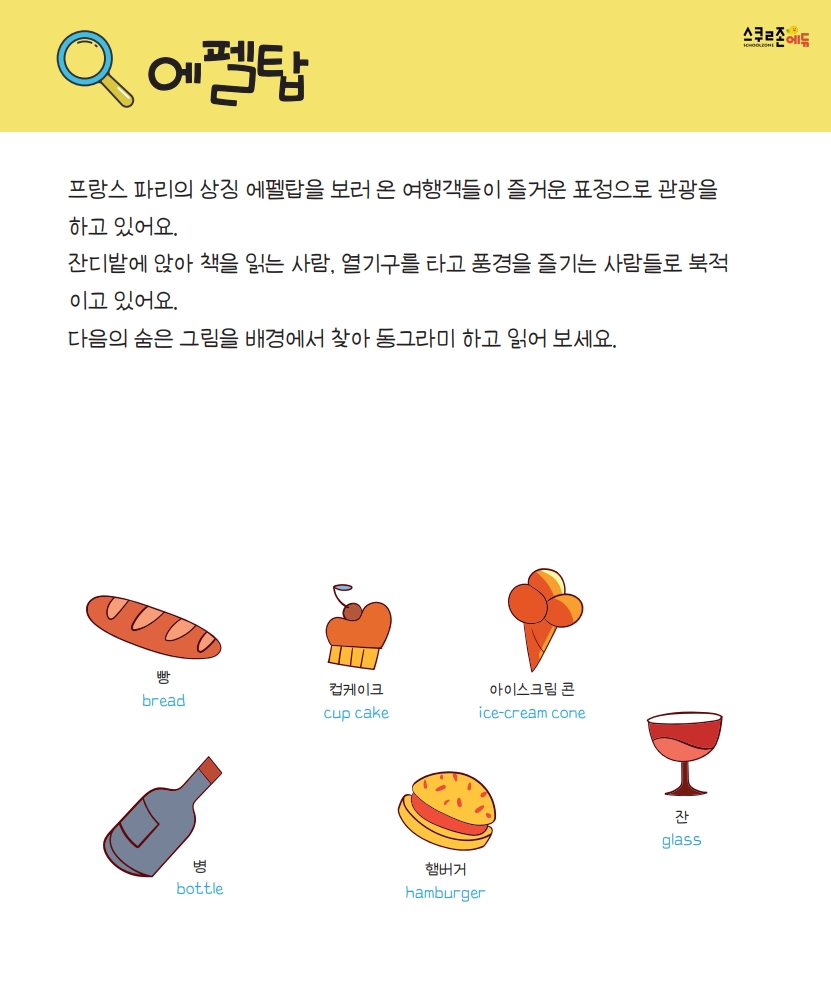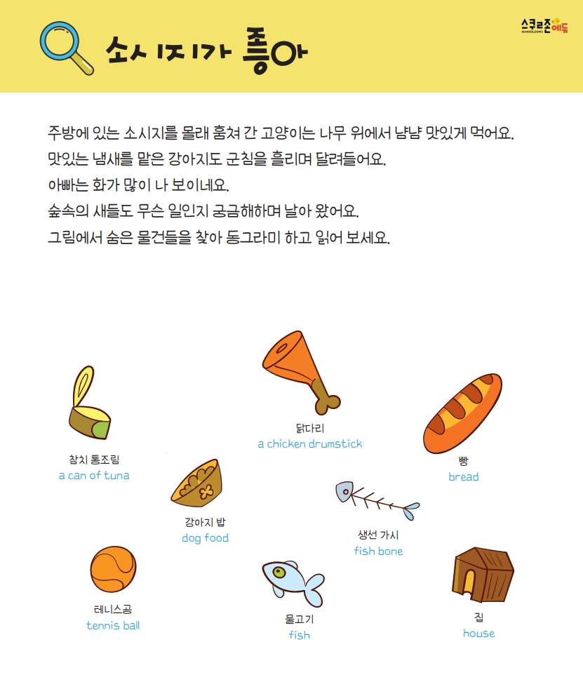 프린트 후, 그림 속에 숨은 사물을 하나씩 동그라미 또는 색칠하며 찾아보세요.