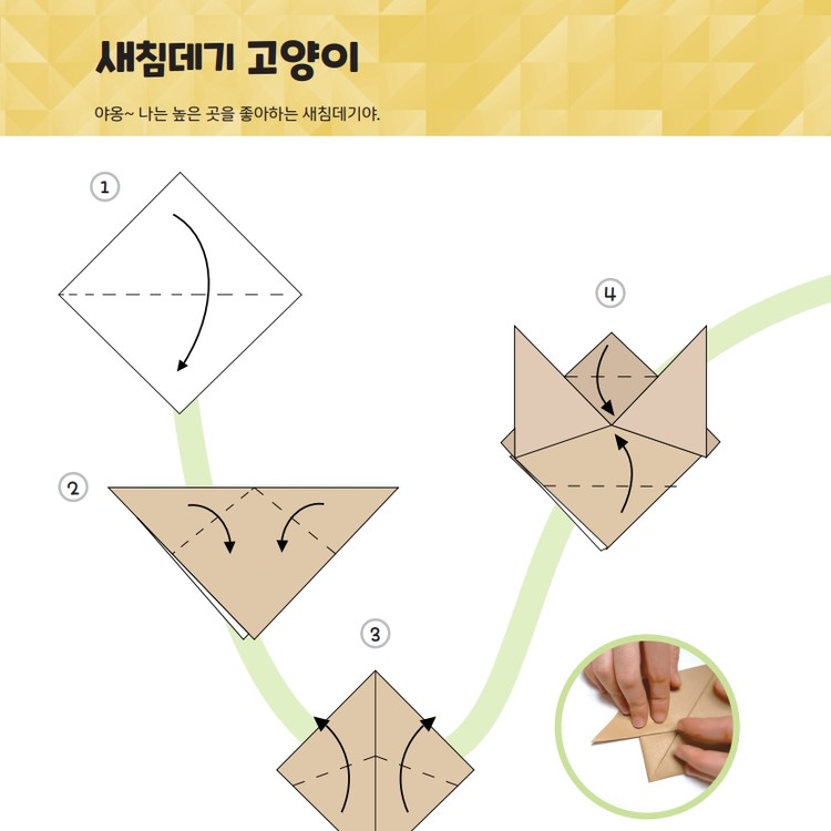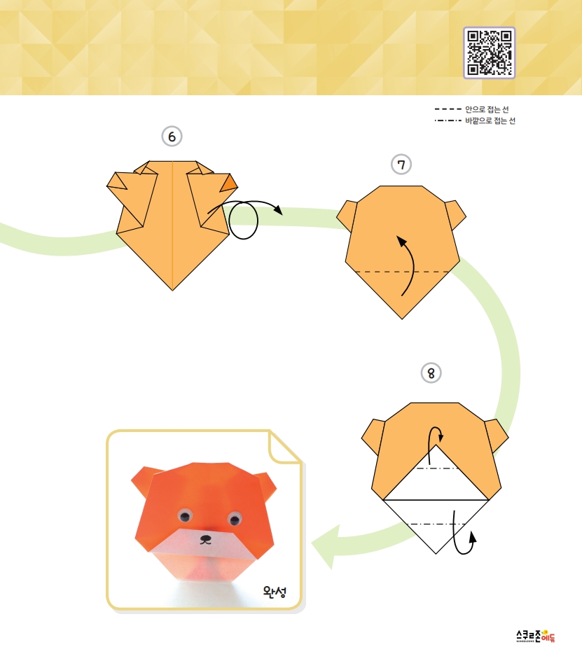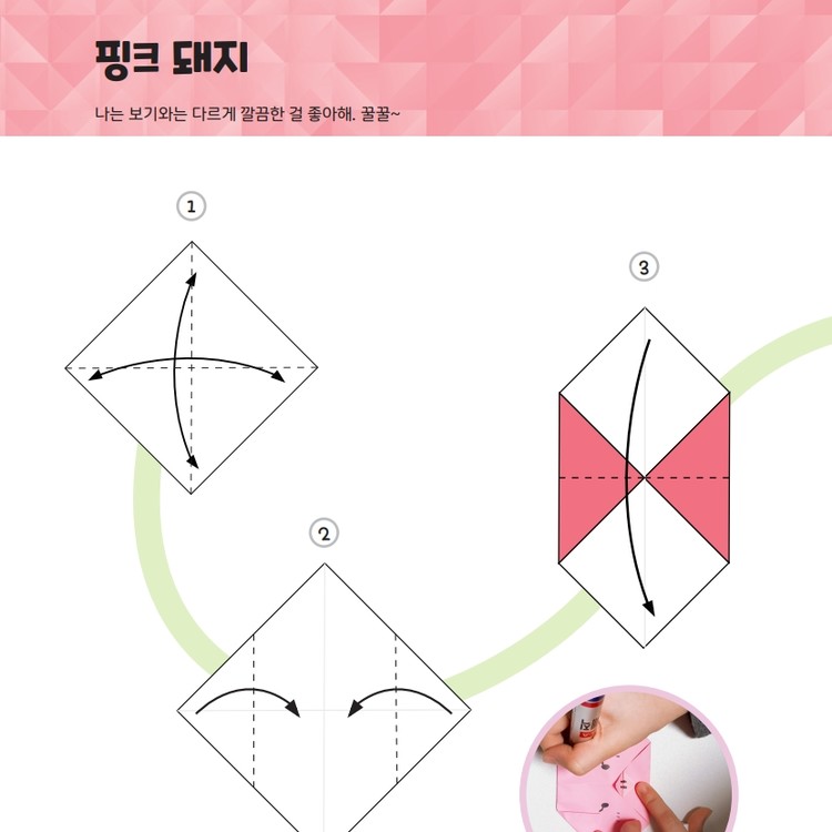 설명은 최소화하고 순서를 따라 접을 수 있도록 선과 가이드를 제공해요.