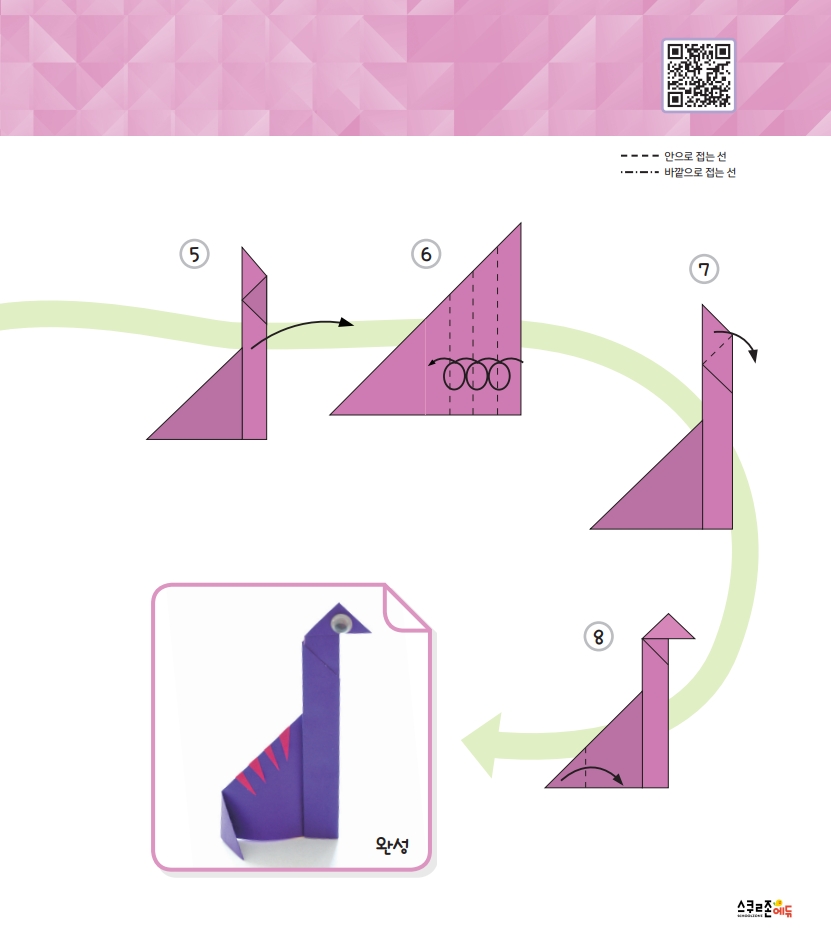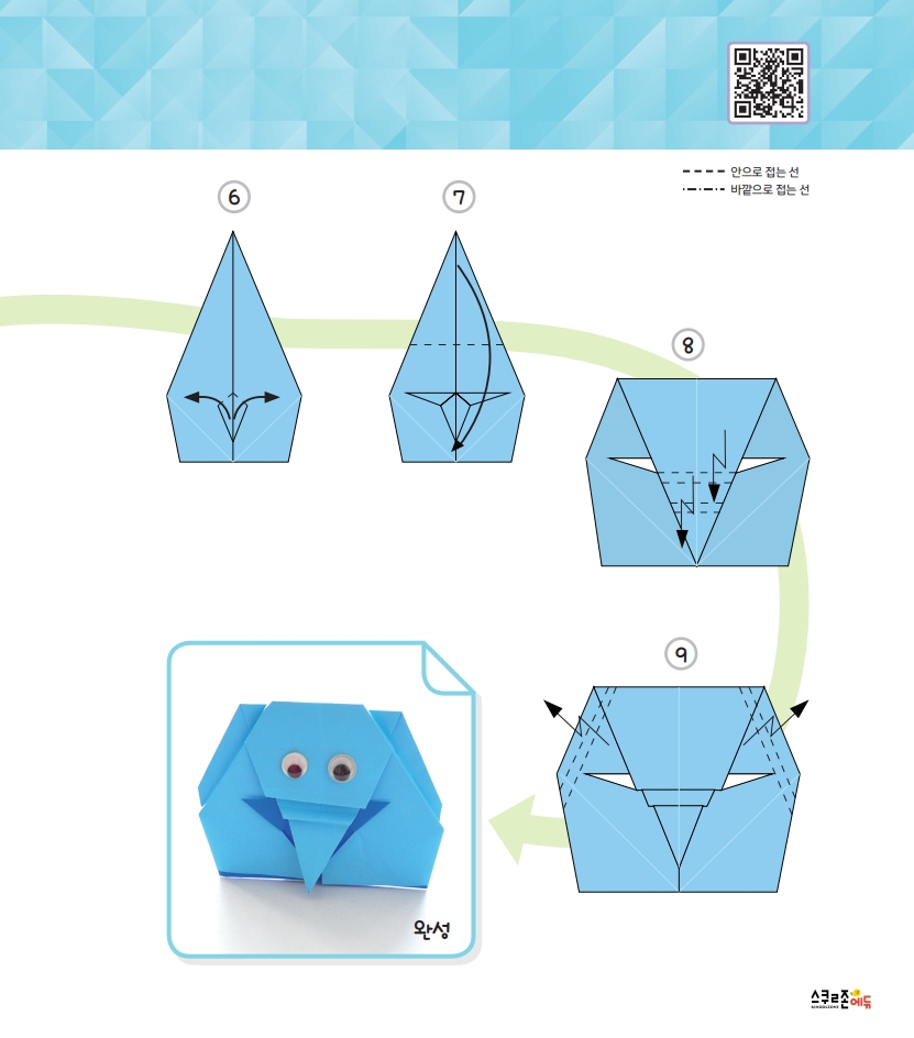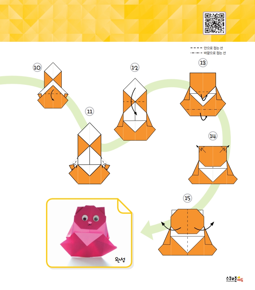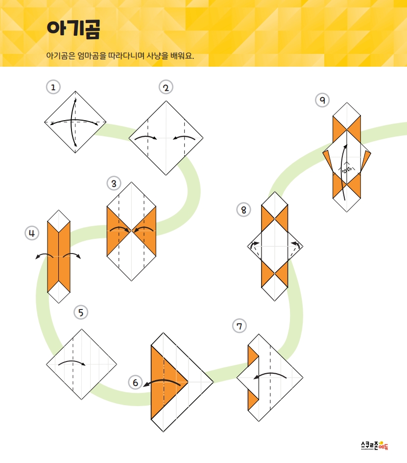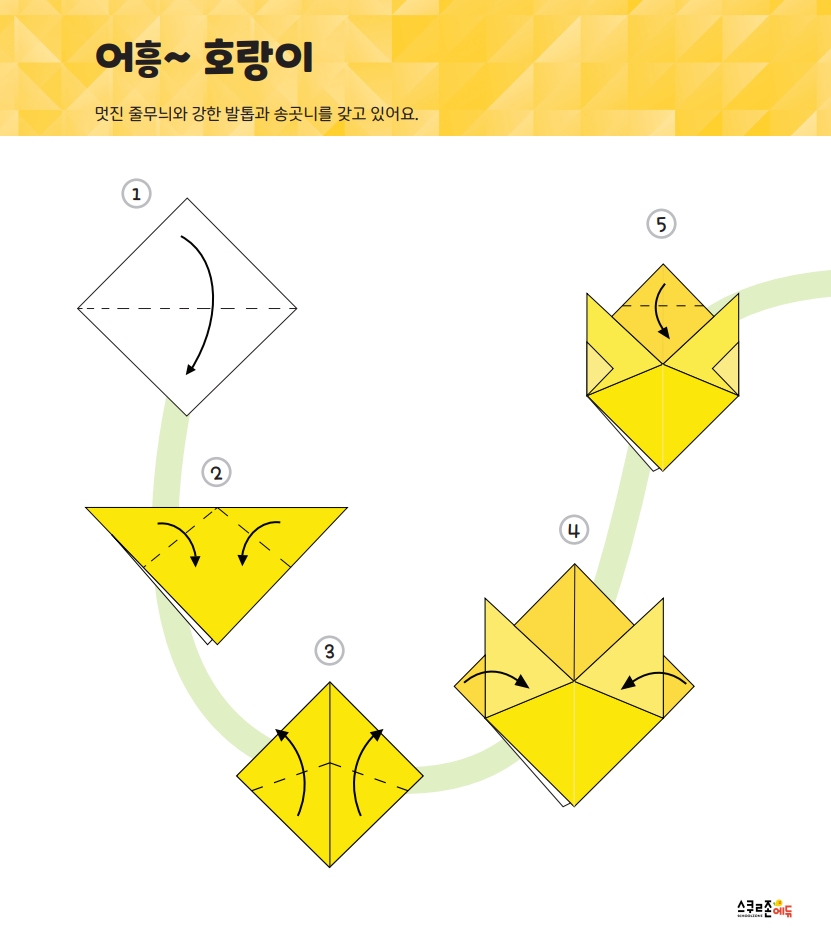 설명은 최소화하고 순서를 따라 접을 수 있도록 선과 가이드를 제공해요.