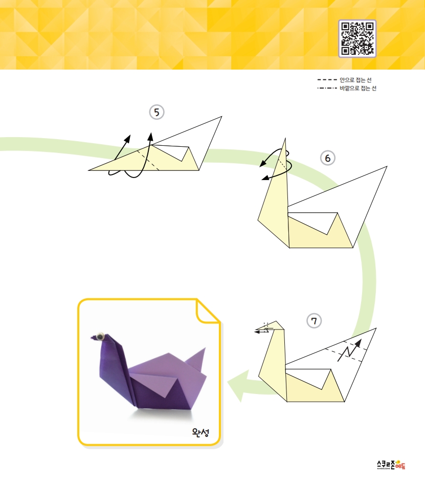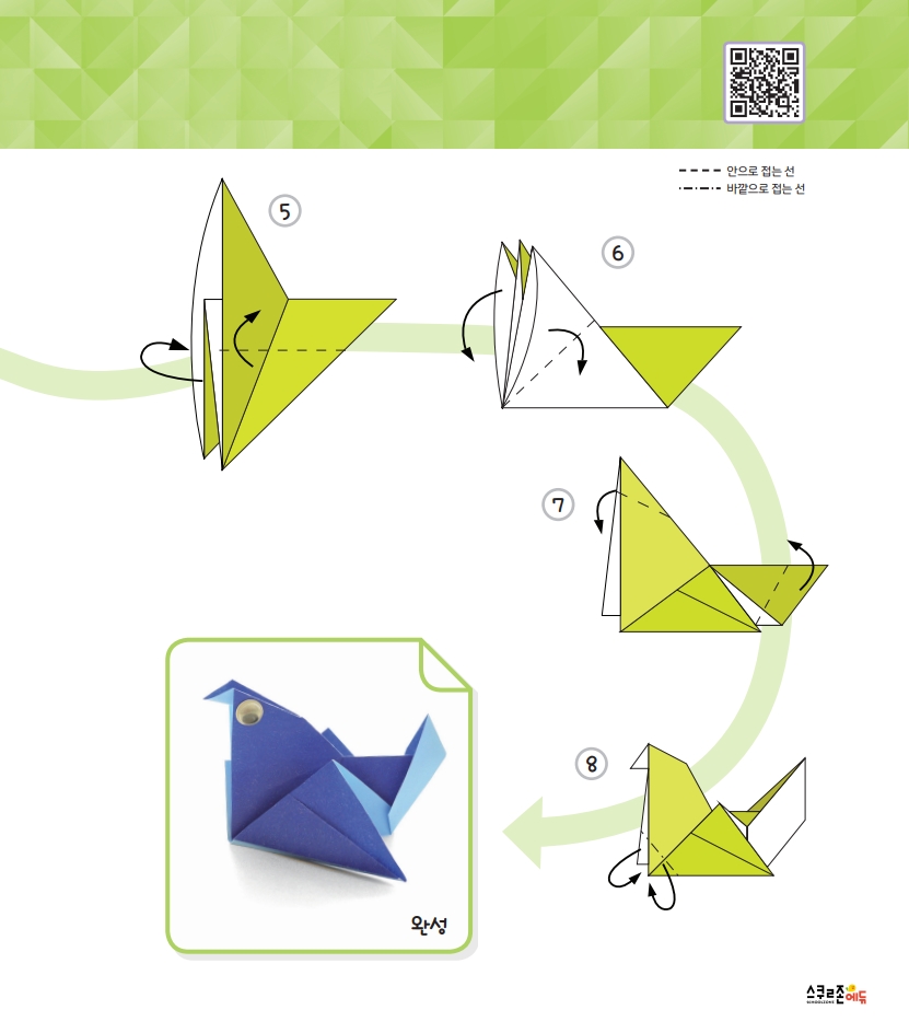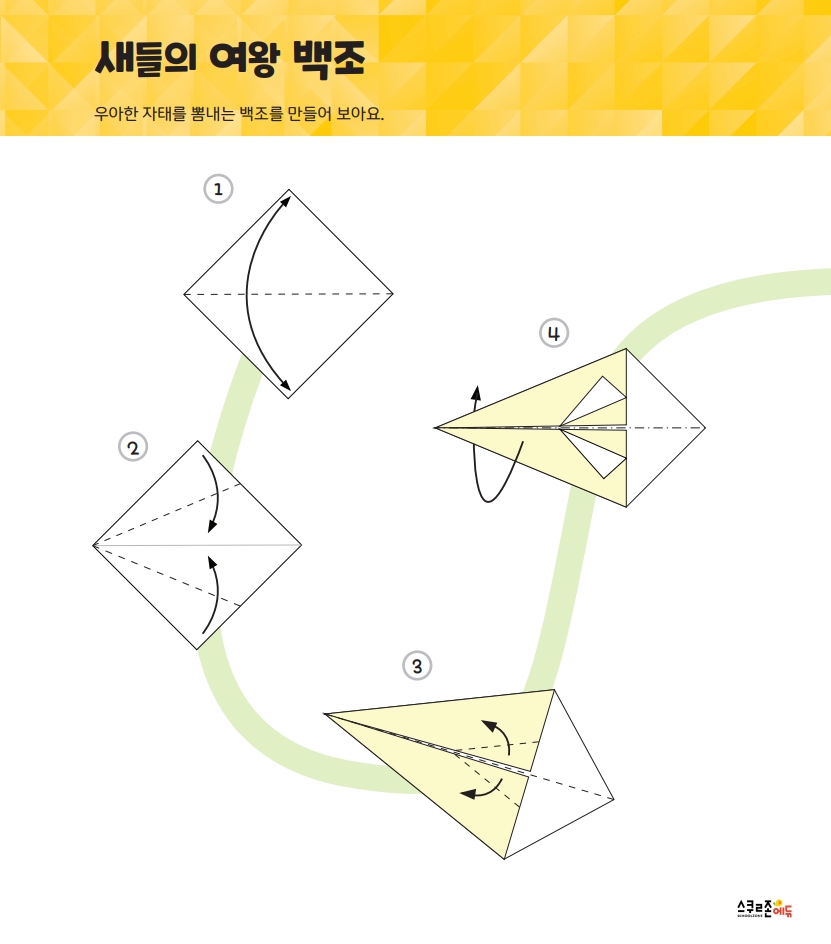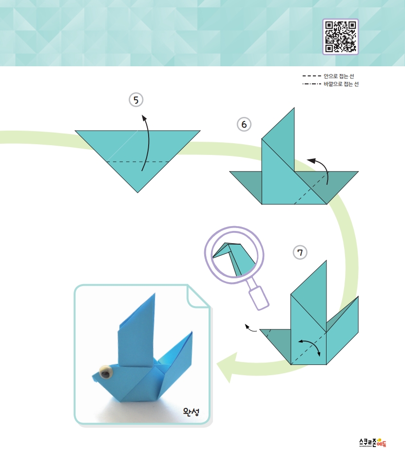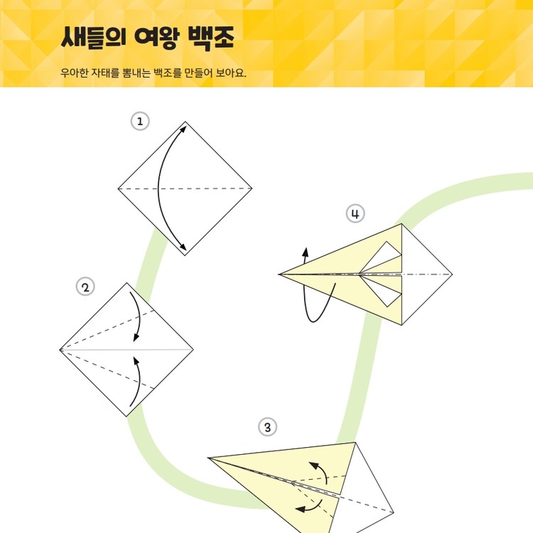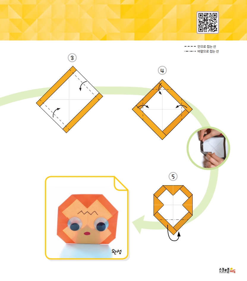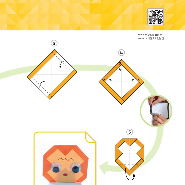 설명은 최소화하고 순서를 따라 접을 수 있도록 선과 가이드를 제공해요.