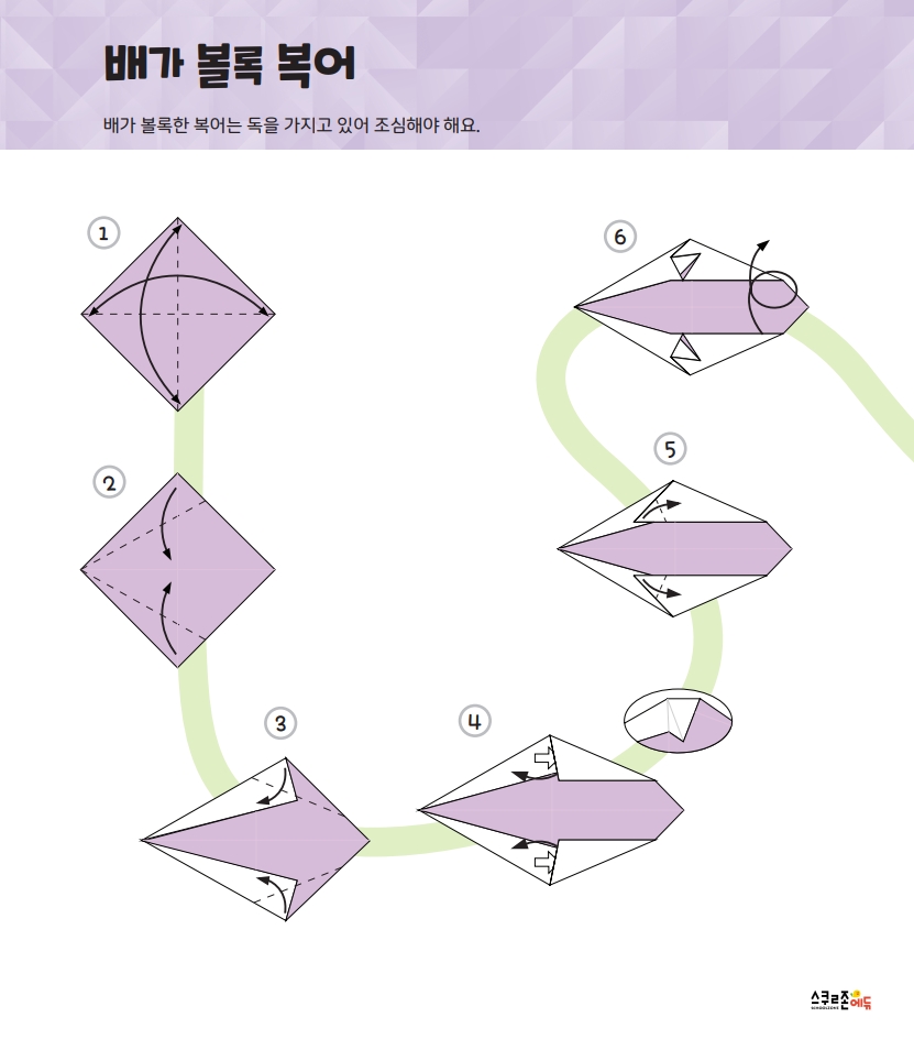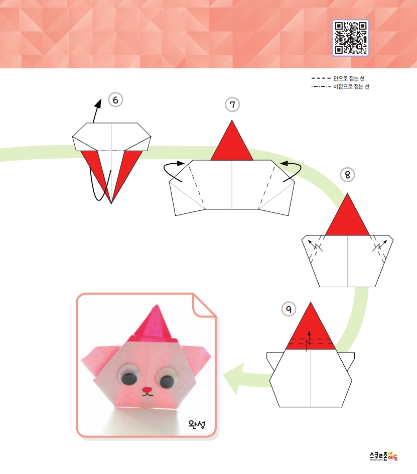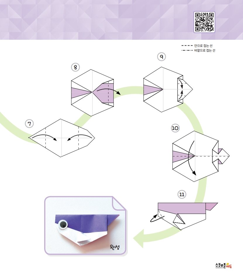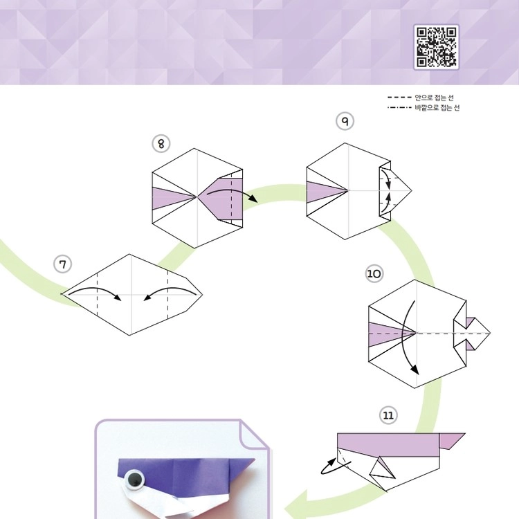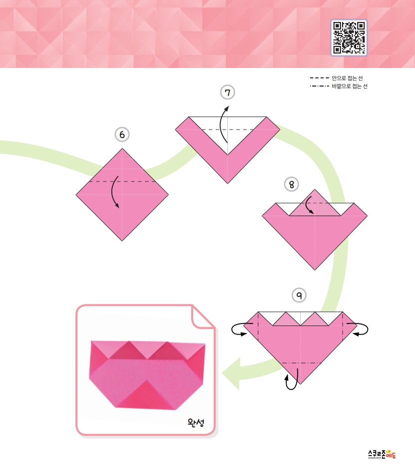 설명은 최소화하고 순서를 따라 접을 수 있도록 선과 가이드를 제공해요.