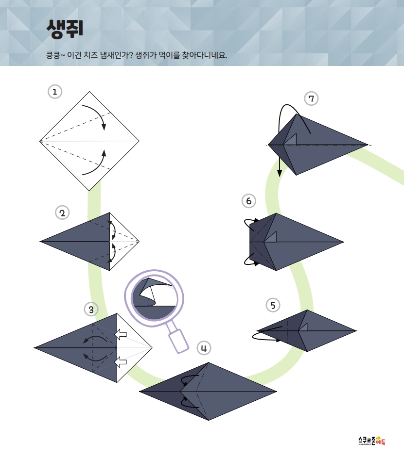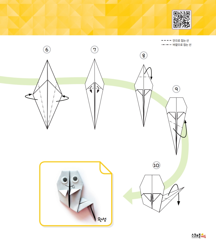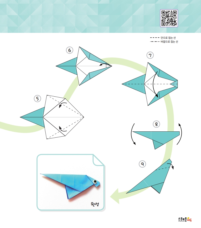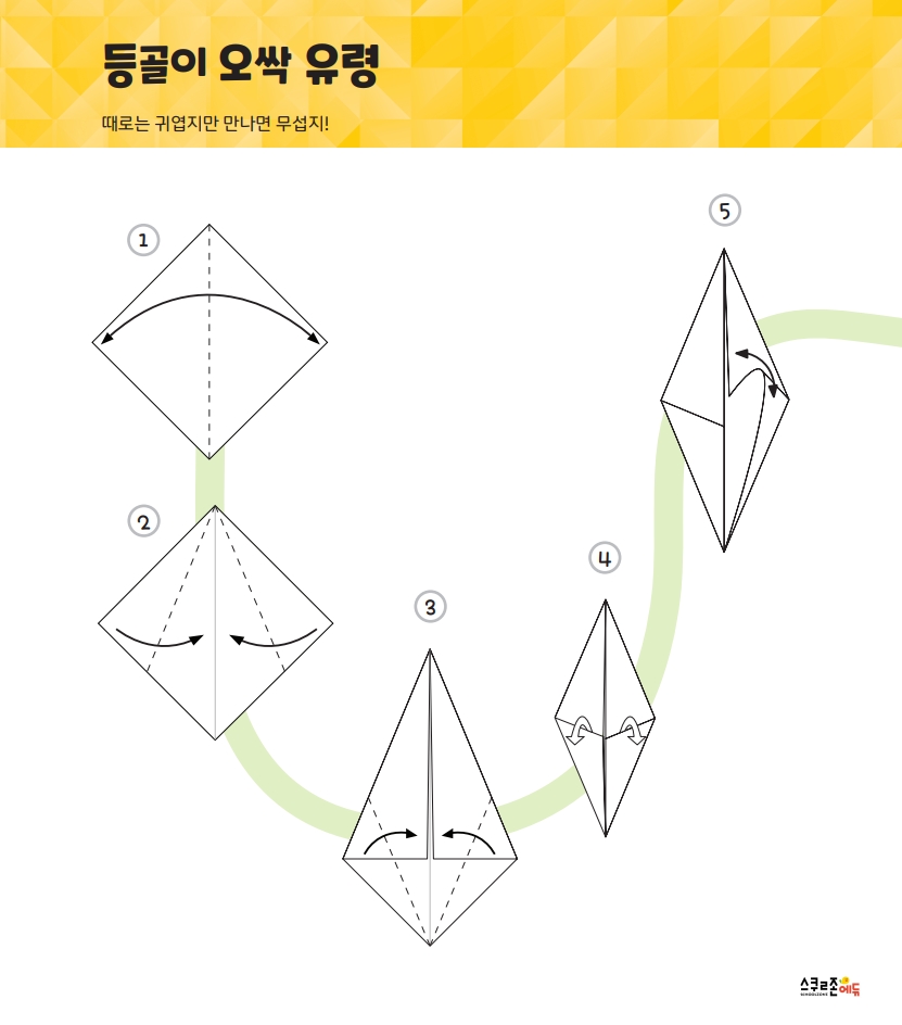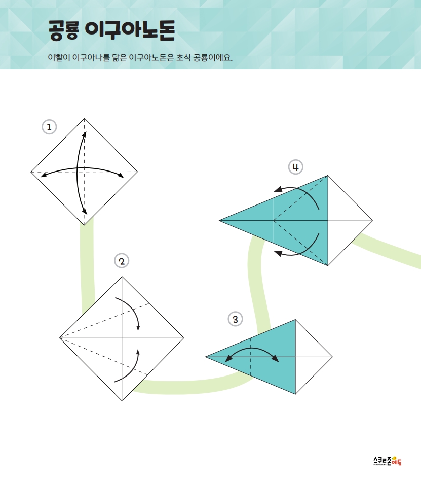 설명은 최소화하고 순서를 따라 접을 수 있도록 선과 가이드를 제공해요.