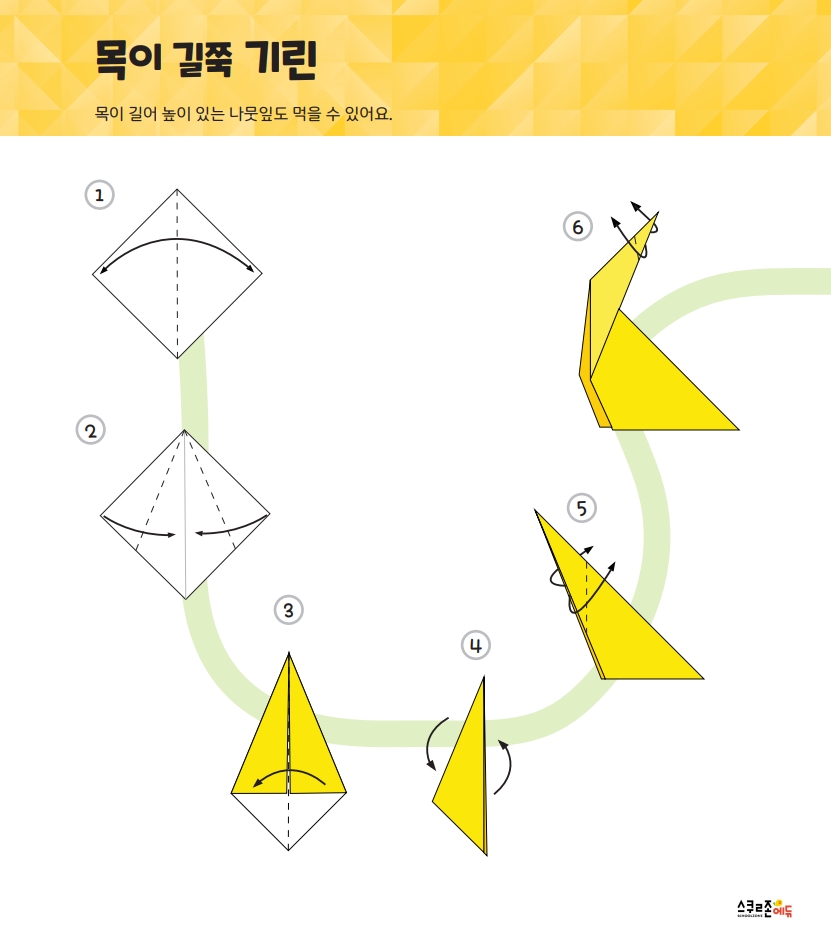 설명은 최소화하고 순서를 따라 접을 수 있도록 선과 가이드를 제공해요.