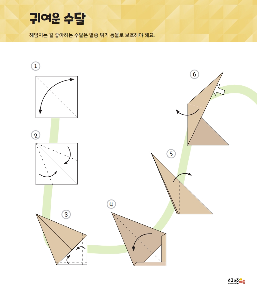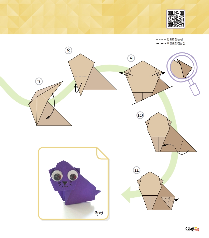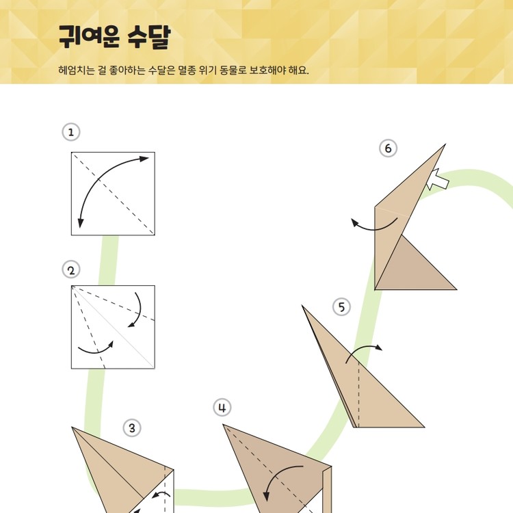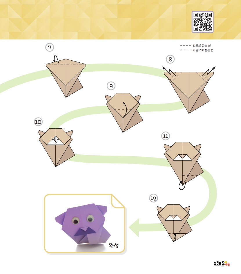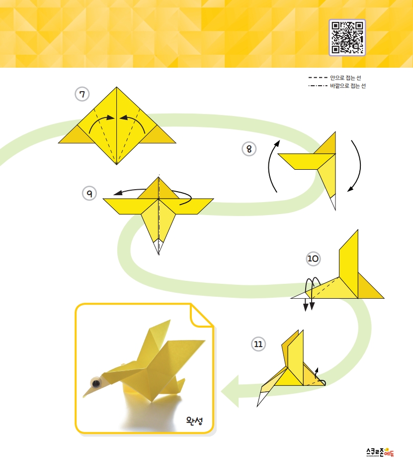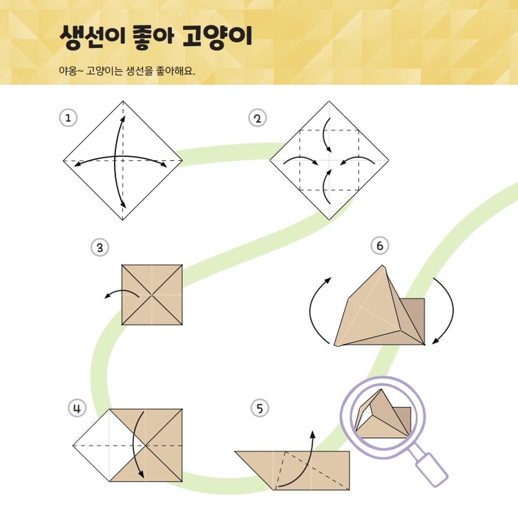 설명은 최소화하고 순서를 따라 접을 수 있도록 선과 가이드를 제공해요.