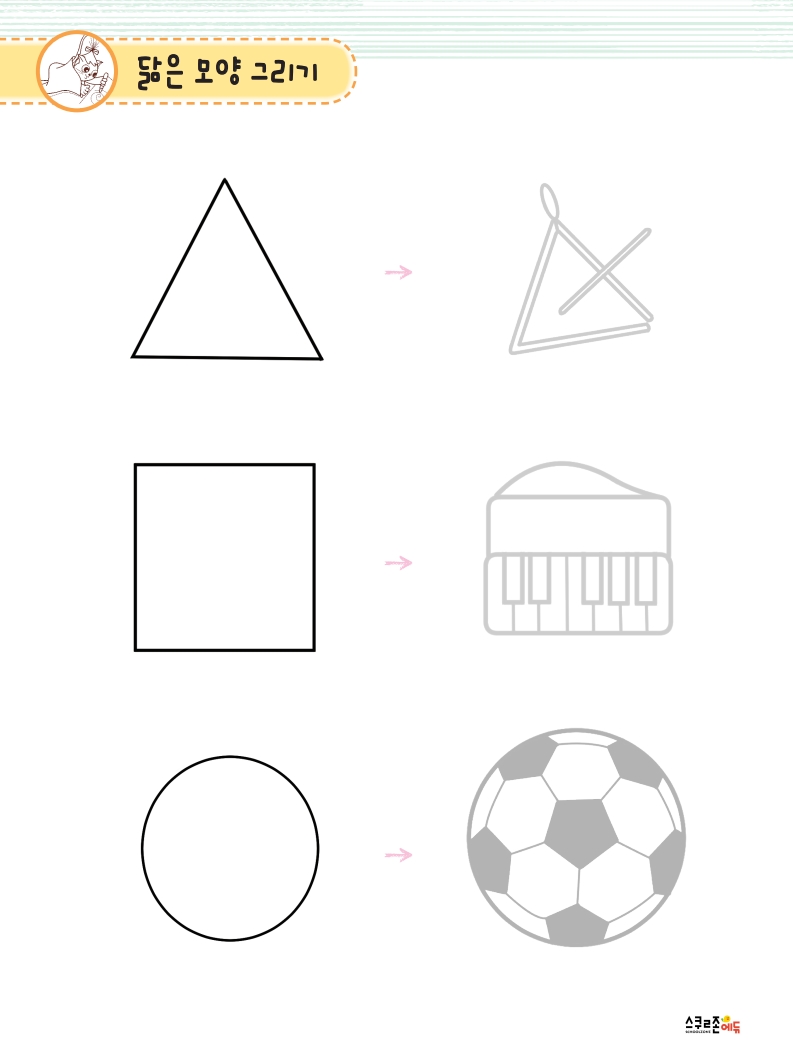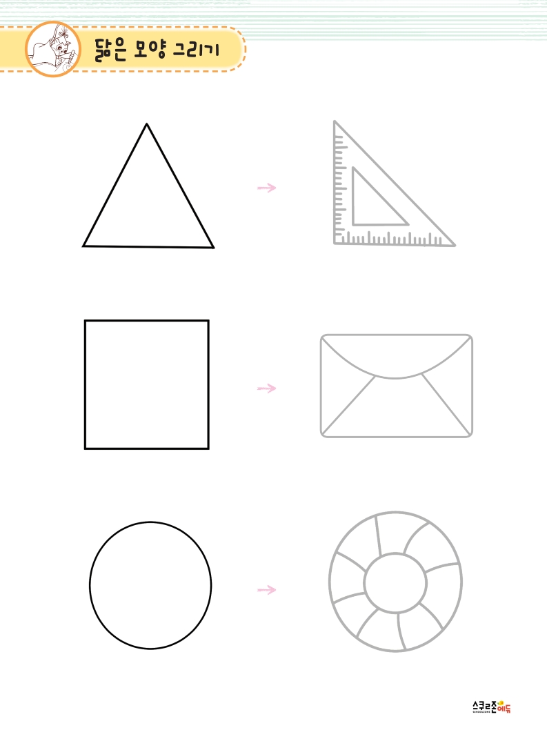 일상 속 도형을 찾아 그리며 놀이처럼 즐길 수 있습니다.